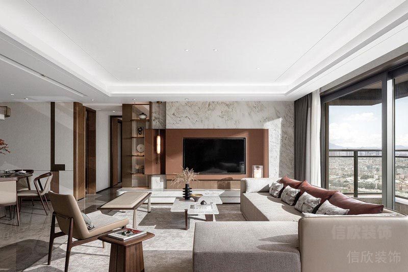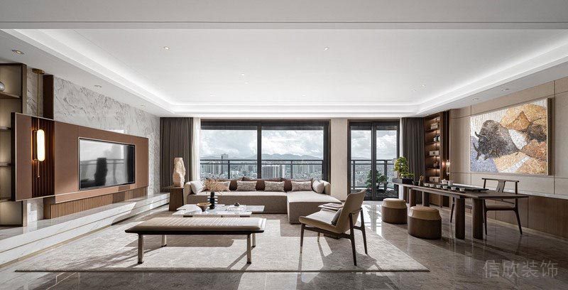 堂廳的結構寬敞明亮,以東方傳統審美取向的中正布局為主,用大量的豎直線條和錯落的水平層面,使室內空間別具一格。浩浩陽光,歲月靜好,都蘊藏在這廳堂之中。這種既包含有東方神韻又符合現代人的審美,便是新中式獨有的氣質。