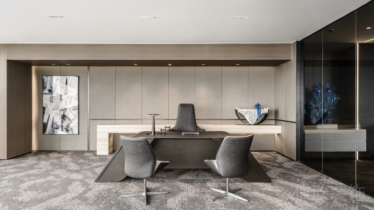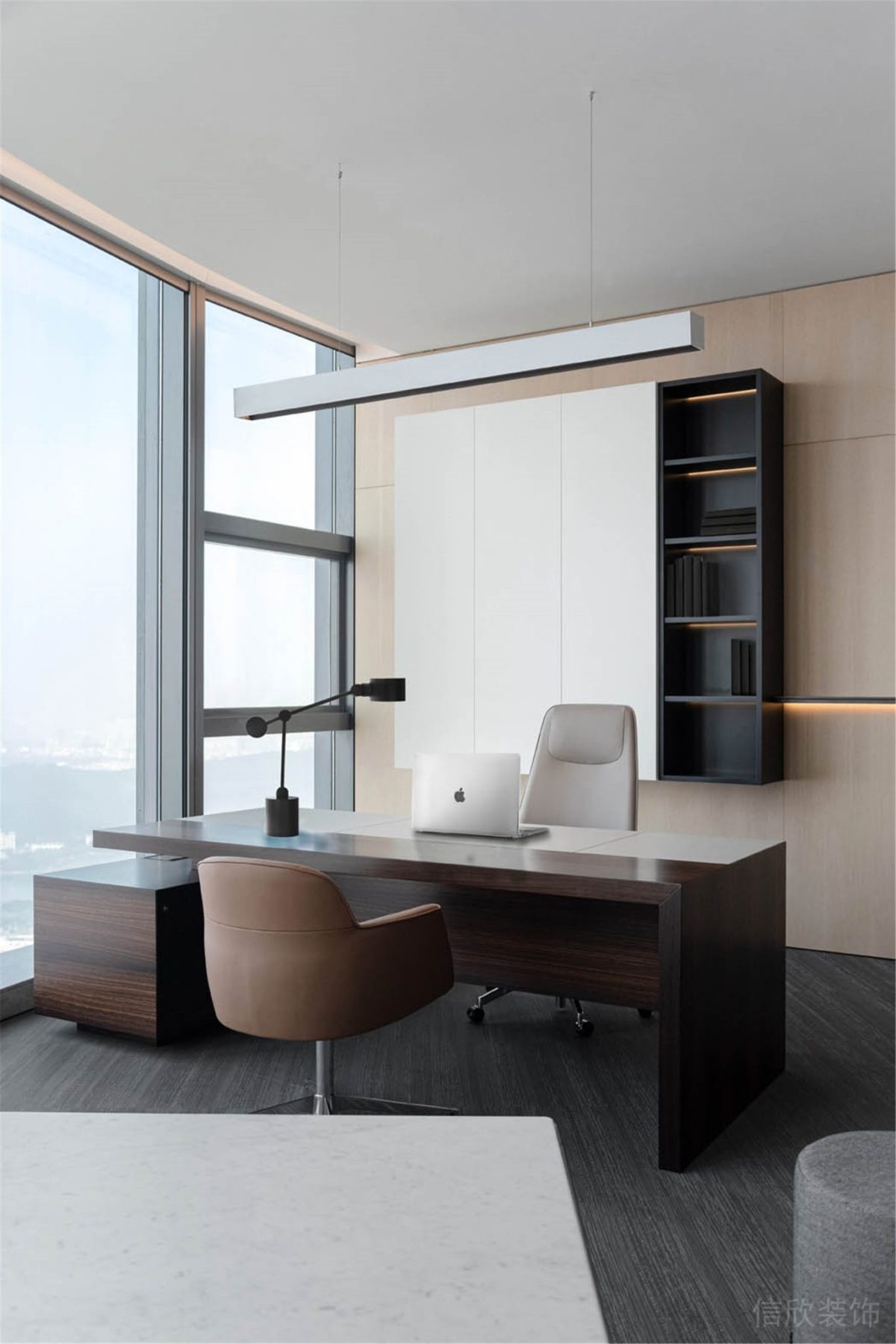 中式辦公室裝修中比較少見傳統中式風格, 多為現代中式風格,也叫新中式風格,摒棄古典中式復雜的雕梁畫棟,應用一些簡潔的中式元素,采用現代的工藝和手法。公司整體體現高檔貴氣。色彩采用對比色調,整體環境以白色為主,家私以紅木、花梨木、柚木等厚重實木制作。配飾以古玩、字畫、屏風、盆景等。文化類、金融類辦公室裝修常會采用此裝修風格。
