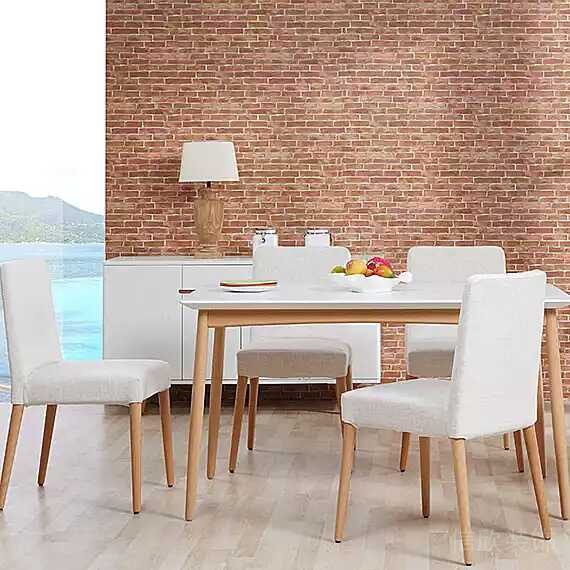 一款實(shí)木層加刨花板制作而成的餐桌,耐用且十分環(huán)保,表面的木紋顯露出自然氣息,桌板兩側(cè)可以翻動(dòng),根據(jù)需要調(diào)整餐桌大小。清新自然的木質(zhì)餐桌沒有多余的裝飾雕花,與棉麻才知道地毯相呼應(yīng),給人一種簡(jiǎn)單安靜的生活氣息。