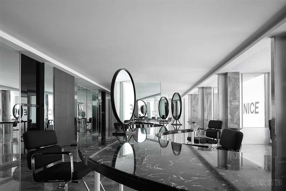 人們在專業理發店的時間及密度正逐年穩步增長,截止至2019行業權威統計數據新女性消費群體每年至少到沙龍接受專業沙龍服務不少于90+次,男性消費者普遍也保持兩周即到發廊接受專業造型服務以保持個性形象,這是一個高頻率的市場行為,降低容積率以換取體驗者更優質的沙龍體驗,也為發型師提供了更獨立的創作環境。消解切分并強化了個體在集體中的共存感。