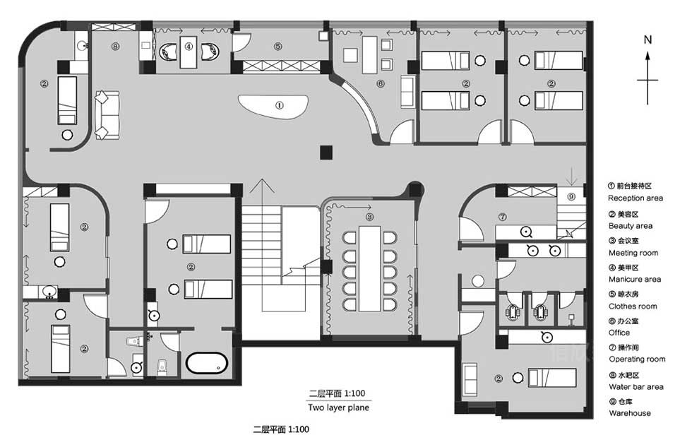 會(huì)議室采用通透的落地玻璃,讓大廳視野顯得更加開闊的同時(shí),也使整個(gè)美容空間顯得更加的專業(yè)