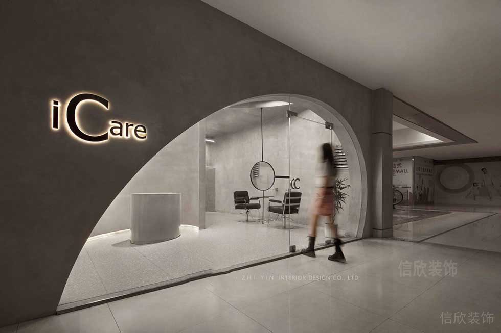 洗頭區和造型區的區域分隔設計,有效的規劃了空間使用的合理性,灰色的空間造型,體現了原始工業感的簡潔與干練唯美的特性,讓顧客能夠更好的舒緩情緒,放松心情。