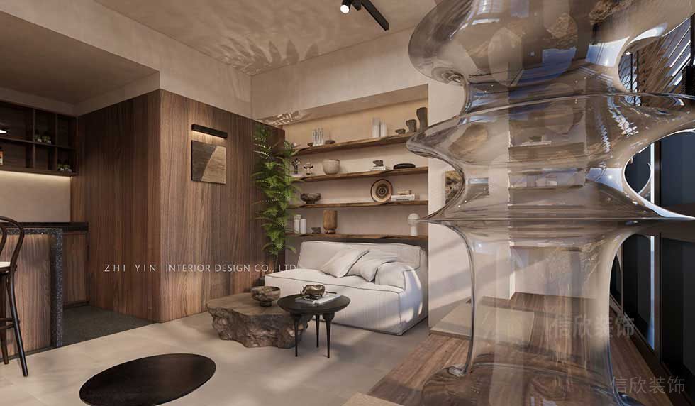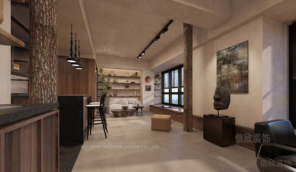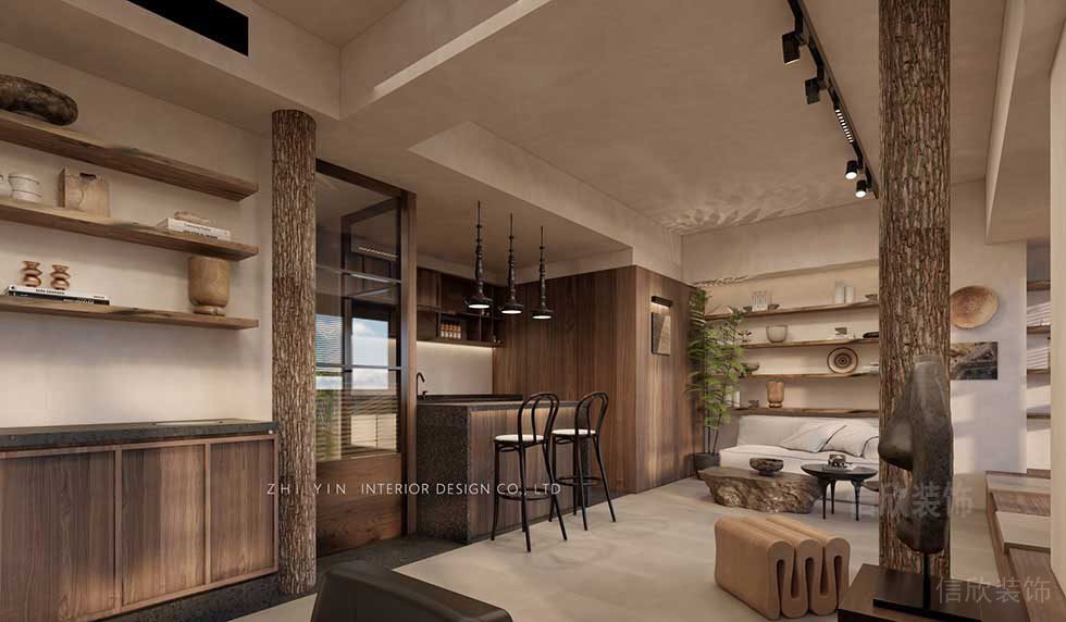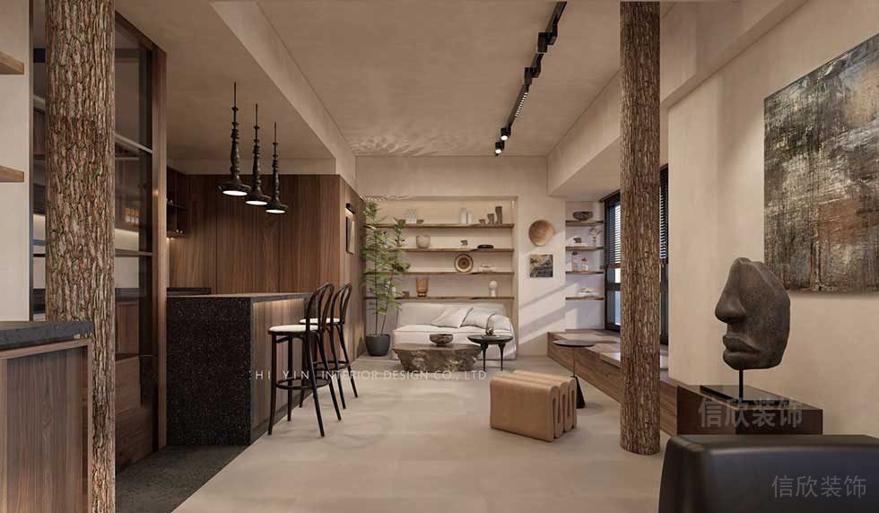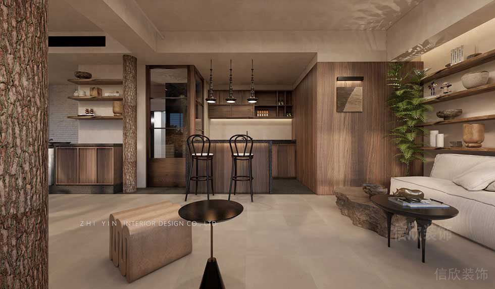 大廳裝修設(shè)計(jì),功能分區(qū)方式并明顯,整體采用原木風(fēng)格的設(shè)計(jì)理念,以極簡的手法,昏黃的顏色,表達(dá)出對于傳統(tǒng)的自然的美的理解,可作為一個(gè)網(wǎng)紅的打卡景點(diǎn)。