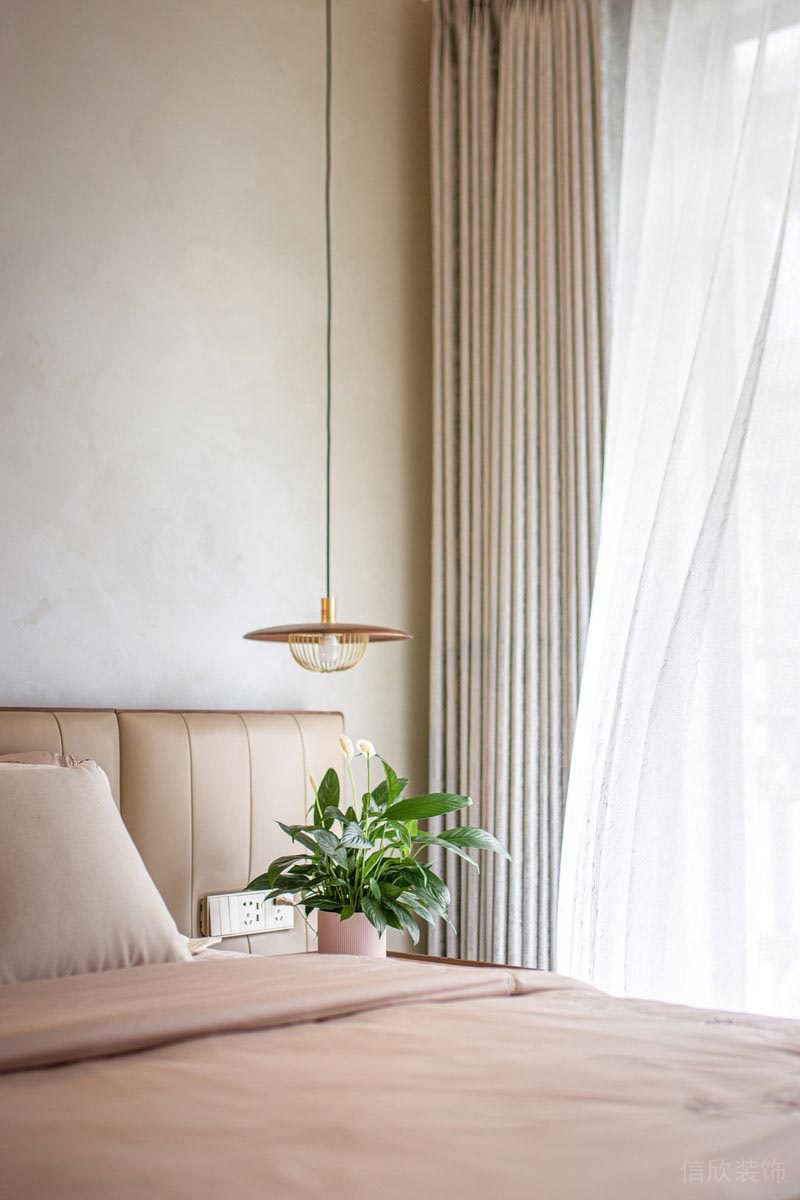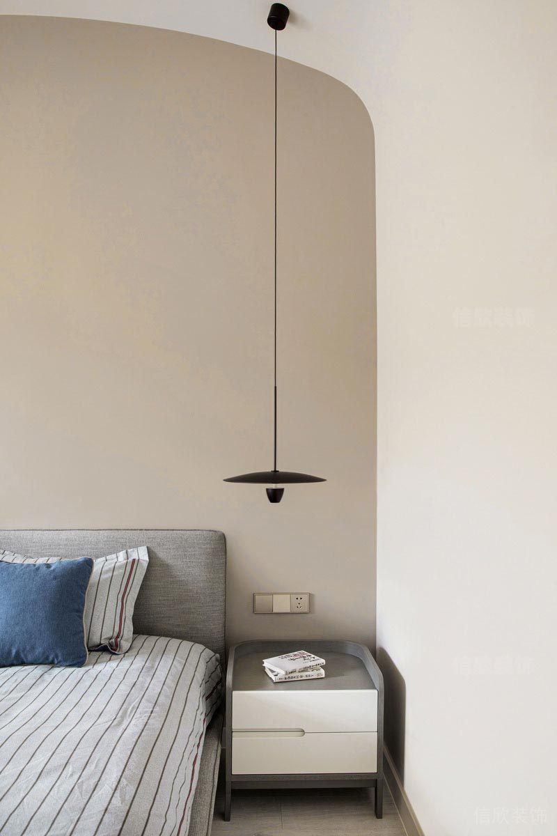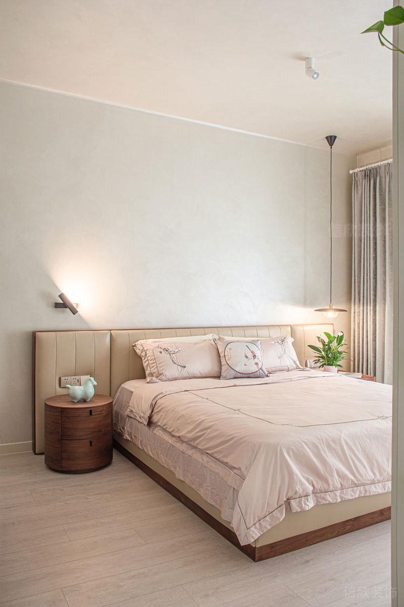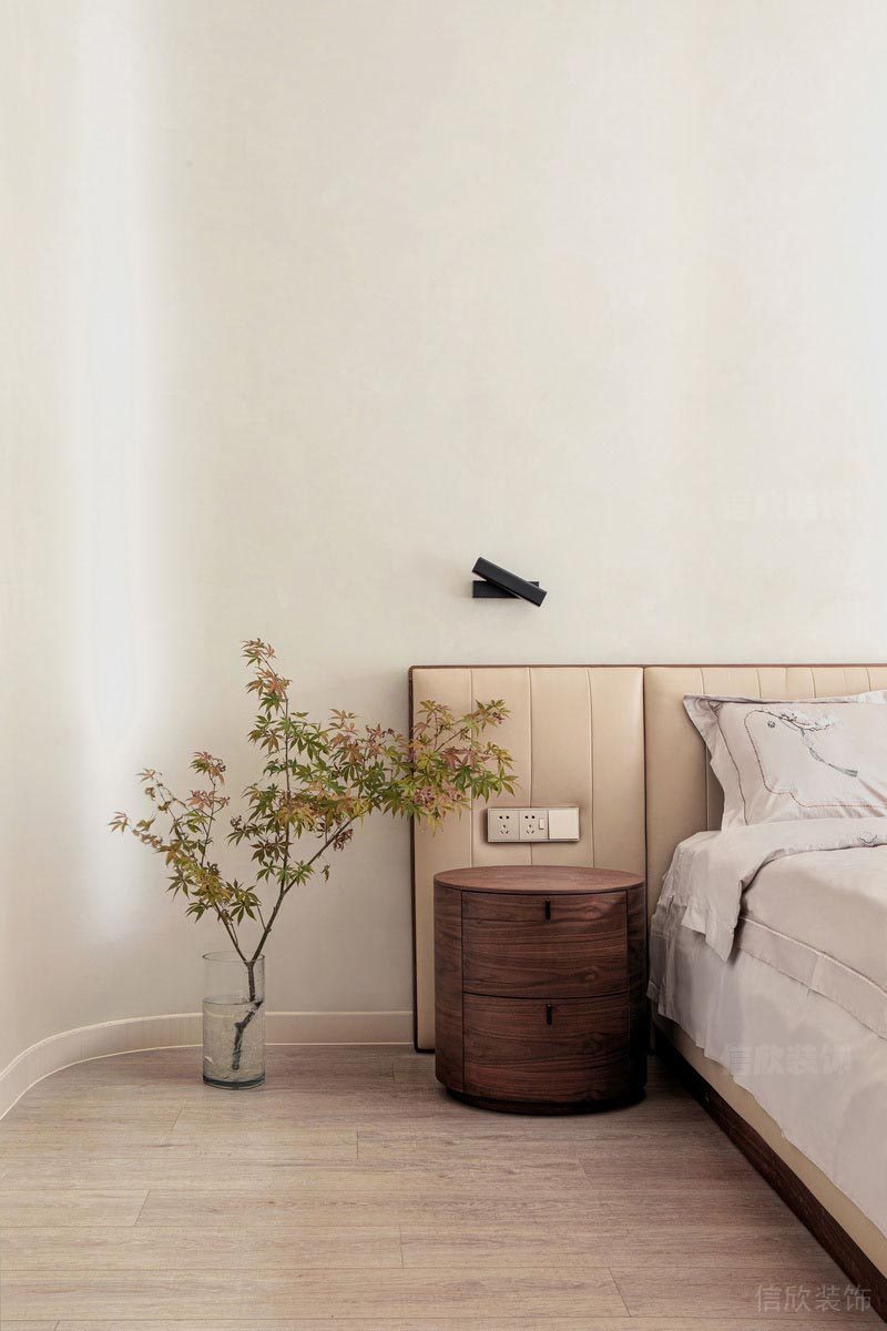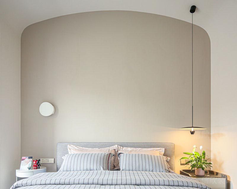 深圳市景田主臥 二樓是主臥,整個空間有很多圓弧元素 圓弧床緣、圓潤燈盞、古樸小桌,緩和有序 去掉尖銳的沖突,似主人緩和友好的生活態度 以及東方飾品,傳遞東方優雅大氣 以物會人,感知居者性情與愛好