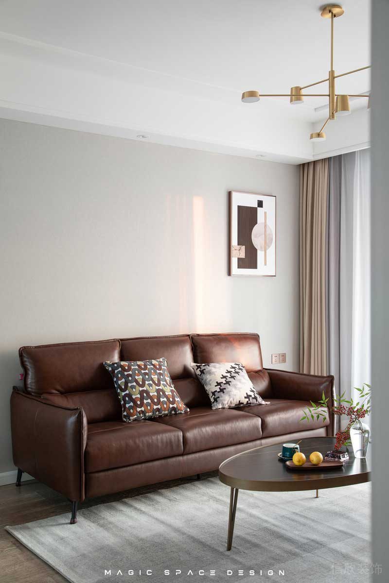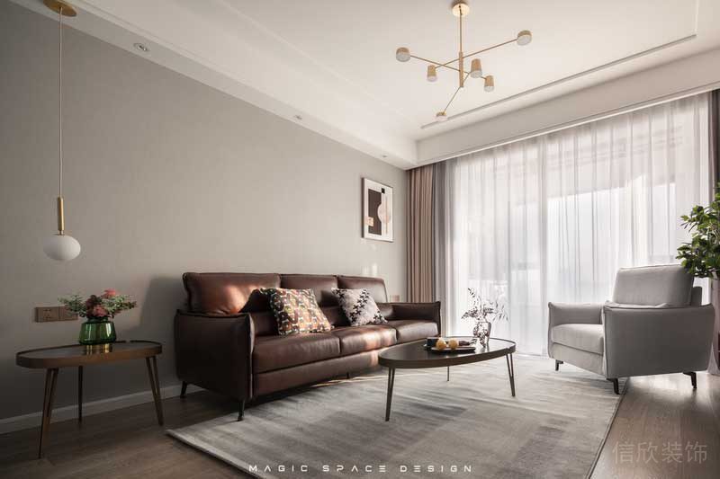 ?深圳龍崗布吉北歐簡(jiǎn)約風(fēng)舊房翻新改造裝修,設(shè)計(jì)師有意強(qiáng)化區(qū)域的結(jié)構(gòu)和色彩,通過一組金屬色的吊燈恰到好處的將虛實(shí)關(guān)系勾勒出來(lái)。
