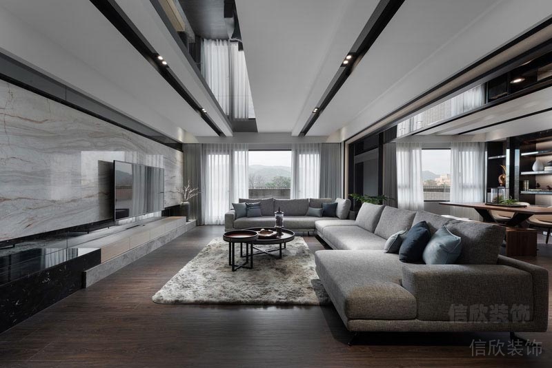 現代簡約黑白風格,顧名思義,就是讓所有的細節看上去都是非常簡潔的。裝修中極簡便是讓空間看上去非常簡潔,大氣。裝飾的部位要少,但是在顏色和布局上,在裝修材料的選擇配搭上需要費很大的勁,這是一種境界。