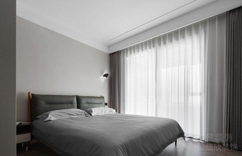 繼續(xù)延伸主臥的設(shè)計(jì)格調(diào), 白墻、灰調(diào)、木飾面、自然光, 經(jīng)典才是時(shí)尚, 精致簡約的現(xiàn)代主義, 沉靜不失溫馨的品質(zhì)睡眠。