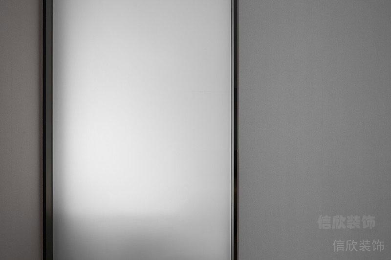 浴缸區(qū)與主臥墻面打通,使用電鍍霧化玻璃, 繼續(xù)放大延展主臥的空間感, 既能看到花瓣灑落弧形浴缸的優(yōu)雅, 又能保證私密性, 為平淡生活增加更多情趣。