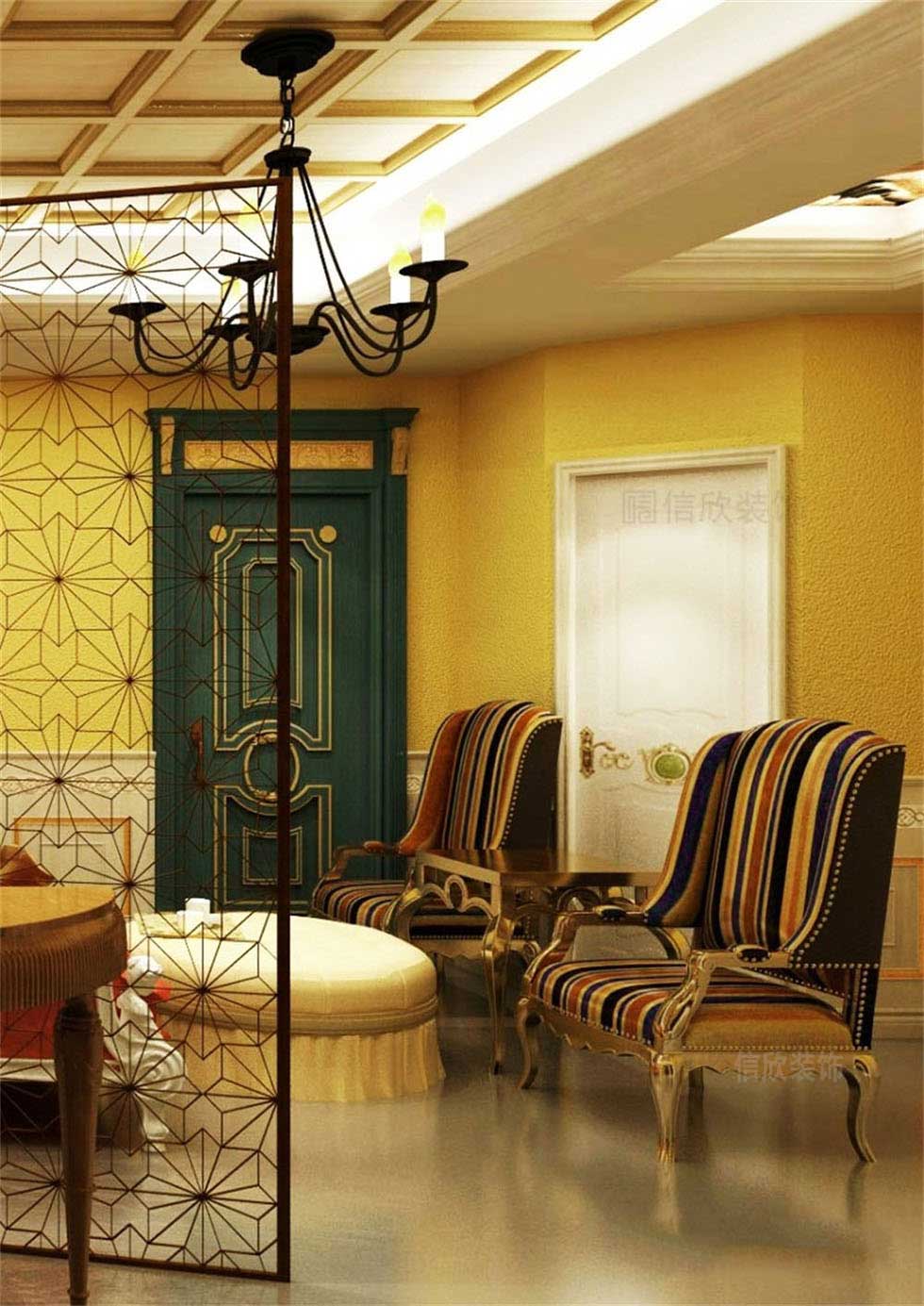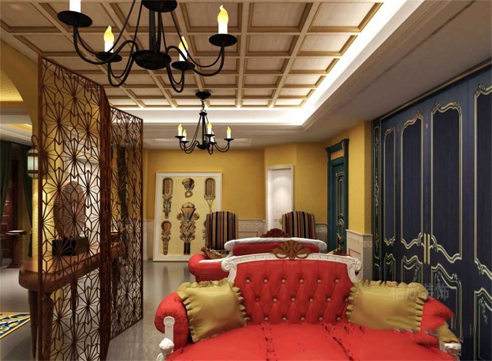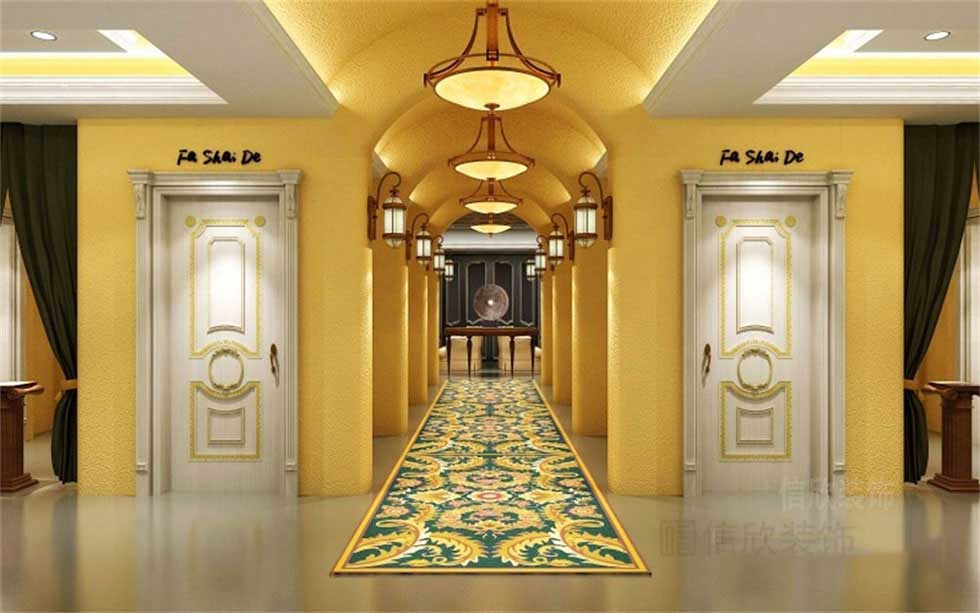 黃色的墻面,在昏暗的燈光照射下,搭配古典歐洲皇室所獨有的紫色,和金紫荊花一樣的優雅氣質,顯得是如此的高貴和富有貴族般的品味。