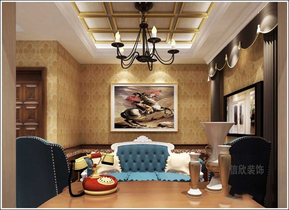 由鏤空式鐵藝隔斷完成的小洽談區布局,有著小空間的溫馨感,但是卻不會感到局促,歐式的沙發椅圍成的小沙龍,更像的參加一場悠閑的下午茶時光,消除緊張的心情和煩悶的情緒。