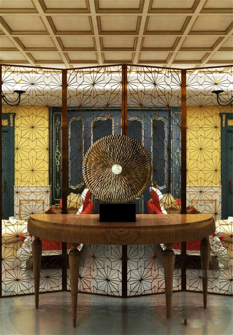 展廳的設計以歐式風格為主,通過小方格的頂面,分開兩個洽談區,方便分開談判的同時,也顯得更加精致,在歐式油畫和洛可可風格的家具中,體驗細膩而浪漫的歐式情調。中間壁爐式的小隔間為主體,體現出傳統歐式文化的理念傳承。
