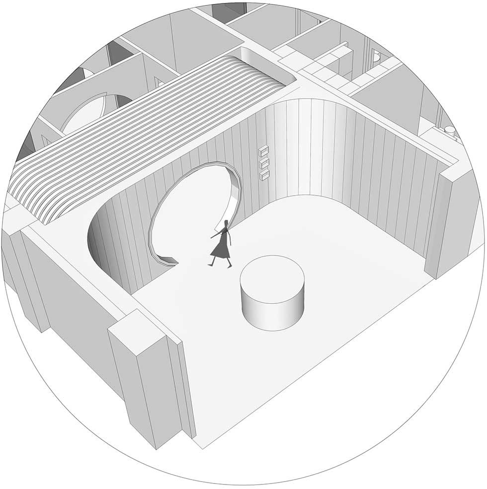 ▼帶光圈的弧形門洞形成一條“時光隧道”