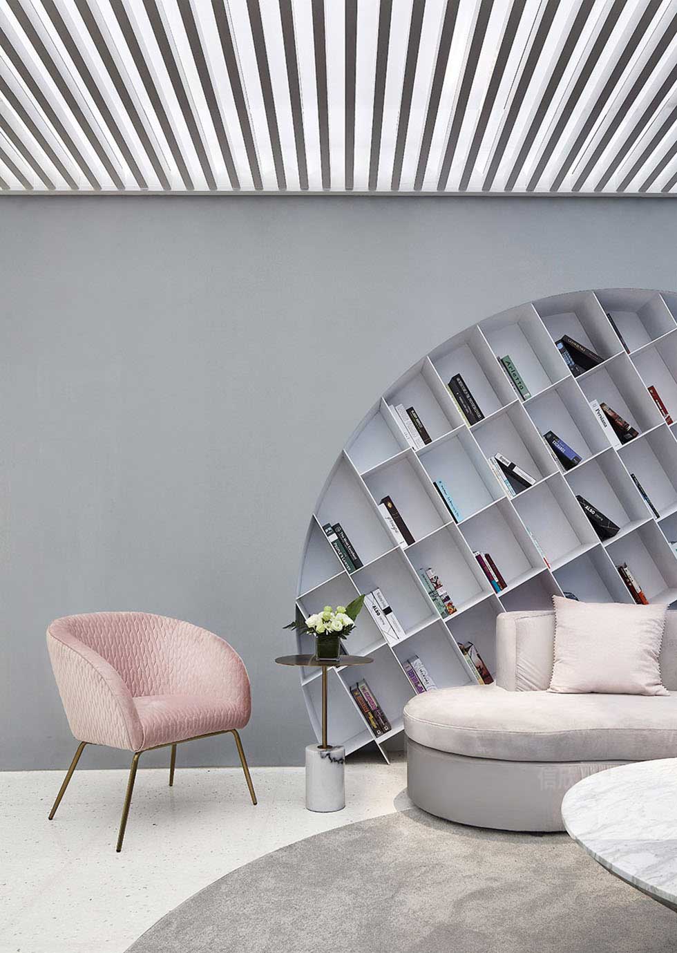隧道盡頭的幻彩玻璃,折射出曼妙的光影。隨著光影進入純凈的大廳空間,白色的水磨石純粹而極致。沙發背后的拱形書架,延續弧線的設計元素,傾斜的造型,打破空間平衡,體現搖滾精神。美容包間內則通過靜謐的燈光設計,營造安靜柔美的空間氛圍,給予內心一份平靜,一刻的冥想,去尋找最真實的自我!
