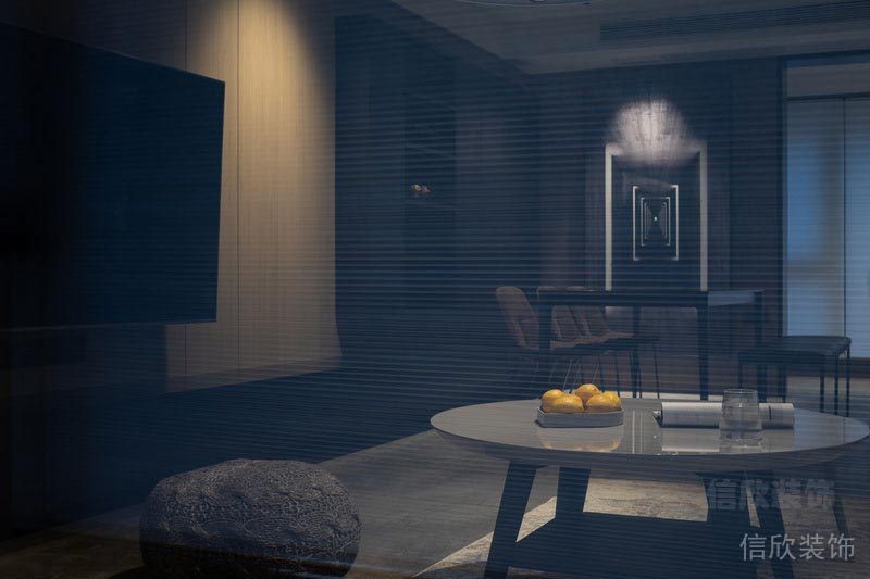 電視機旁懸浮的多功能柜體滿足和小物件展示和用餐相關收納功能的延伸,滿足功能的同時也讓超過七米的主背景變得生動豐富