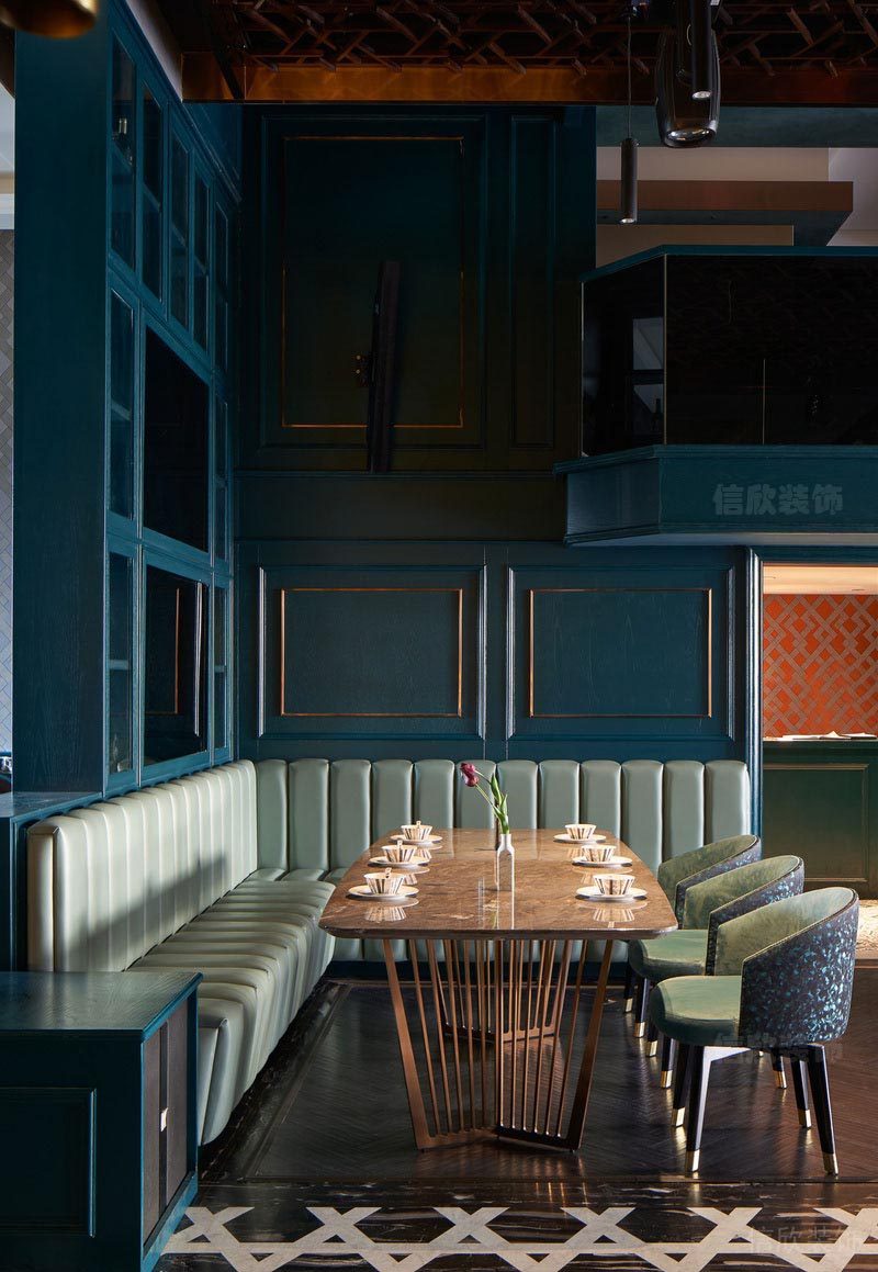本案位于深圳市南山區是一所中式餐廳的裝飾設計案例,中式風格的客廳具有內蘊的風格,為了舒服,中式的環境中也常常用到沙發,但顏色仍然體現著中式的古樸,中式這樣表現使整體空間,傳統中透著現代,現代中揉著古典。這樣就以一種東方人的‘留白’美學觀念控制的節奏,顯出大家風范,其墻壁上的字畫無論數量還是內容都不在多,而在于它所營造的意境。可以說無論現在的西風如何勁吹,舒緩的意境始終是東方人特有的情懷,因此書法常常成就這種詩意的手段。這樣躺在舒服的沙發上,任千年的故事順指間流淌。