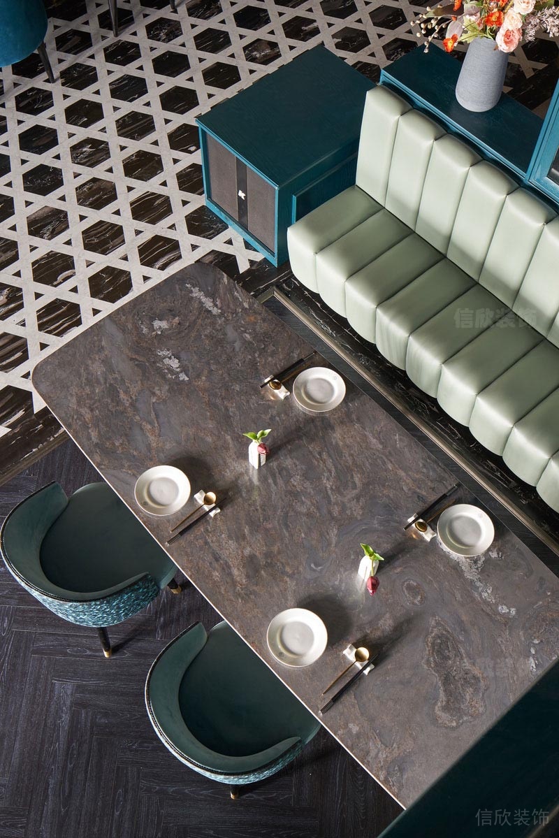 頂面與地面運用不同的材質相同的紋樣穿插連接。