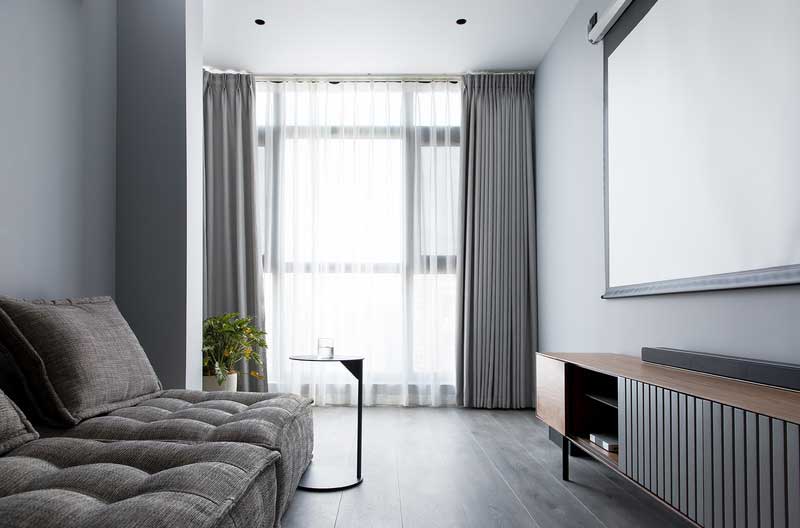 專門騰出一見房間,作為光影廳的設計,說明客戶平時很有生活情趣,很熱愛生活,周末之余坐在躺椅上,飲料,爆米花安排下,在家里也能體驗電影院的震撼感覺。