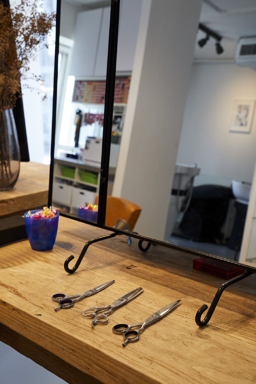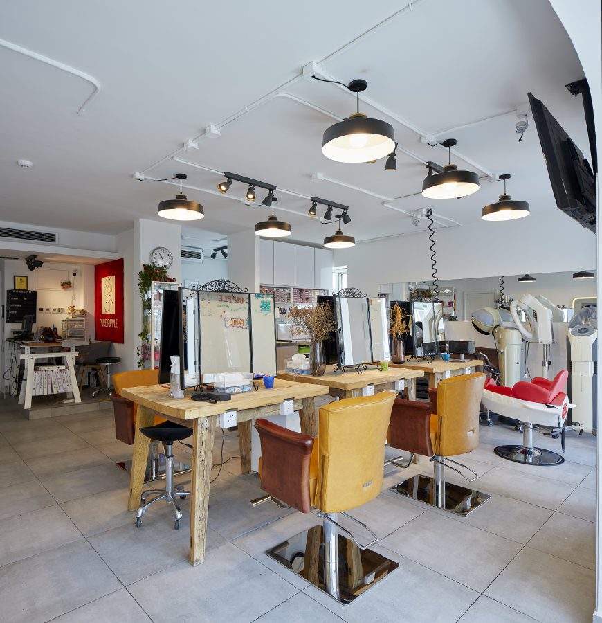 大廳的裝修設(shè)計(jì)以白色和灰色為主,本著簡潔實(shí)用的理念,原木風(fēng)的桌椅,造型區(qū)和大廳不做多余的功能分區(qū),簡單的發(fā)型鏡和操作臺,簡潔干練中,給人一種畫室的藝術(shù)氣氛。