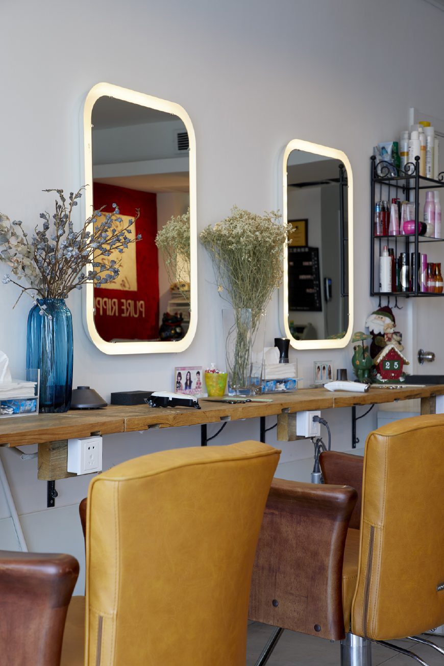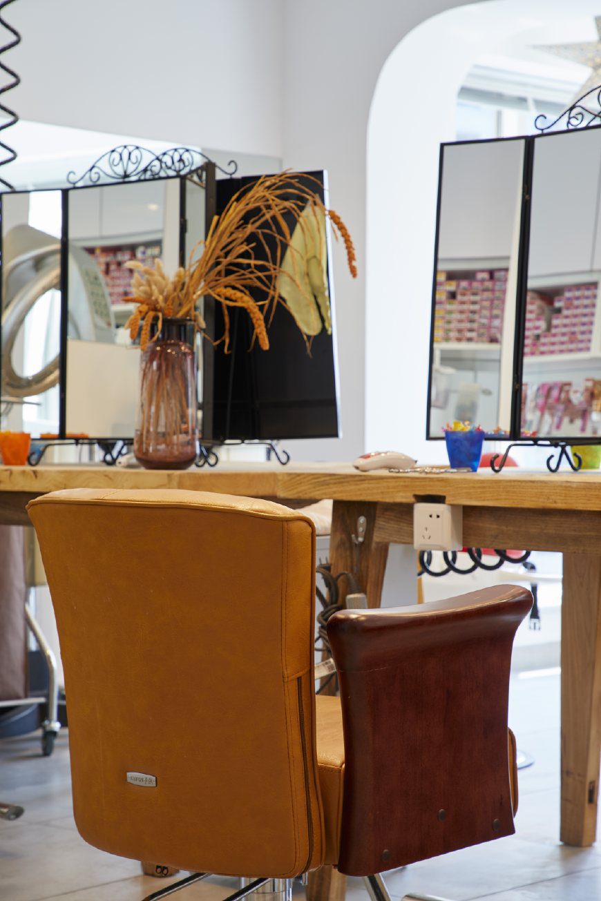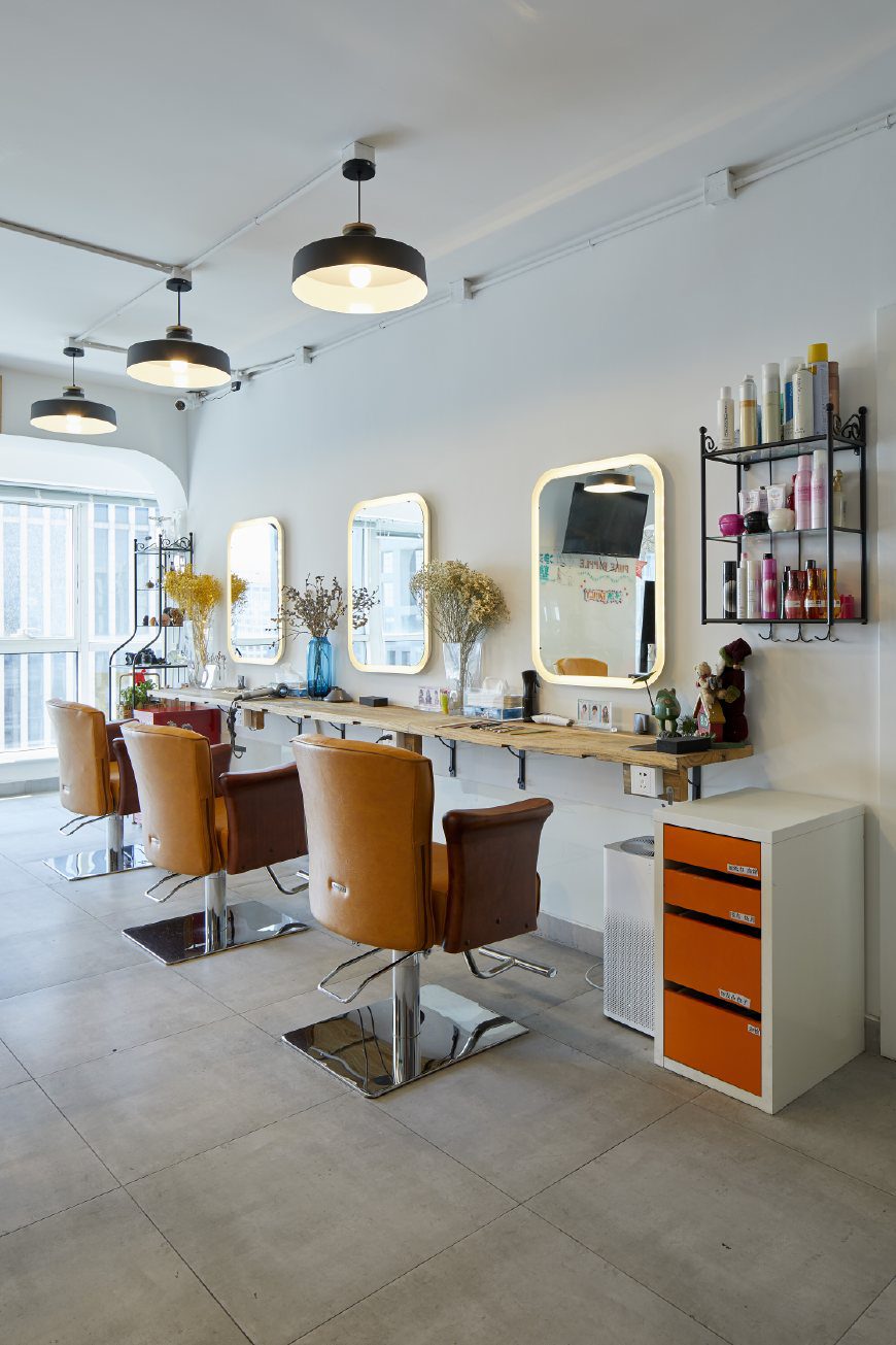 北歐小清新的主導(dǎo)風(fēng)格,首先提高了凈漪美發(fā)在空間上的“辨識度”,白色乳膠漆墻面、實(shí)木工作臺和皮質(zhì)美發(fā)椅,共同構(gòu)成了一個(gè)舒適的美發(fā)空間。從業(yè)主的角度出發(fā),這種風(fēng)格造價(jià)低、施工快、好打理,也讓經(jīng)營的壓力變得可以接受。