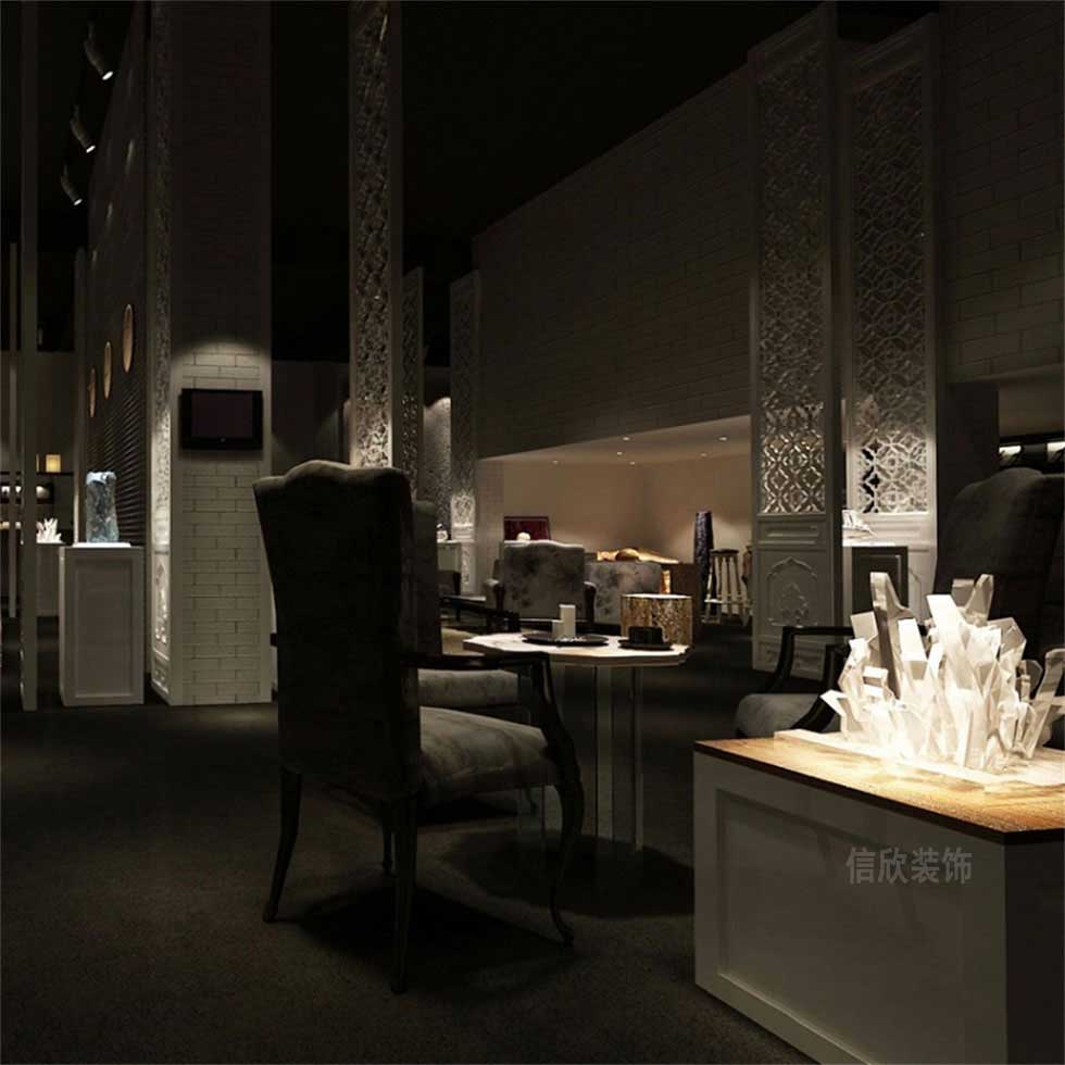 中島臺酒吧區(qū)的設置,采用白色馬賽克鋪貼,加上咖啡色的天然紋理大理石臺面,不能可以在有如酒吧般歡愉的氣氛中邊品酒邊鑒賞珠寶,也能滿足一些小型的私人宴會接待。
