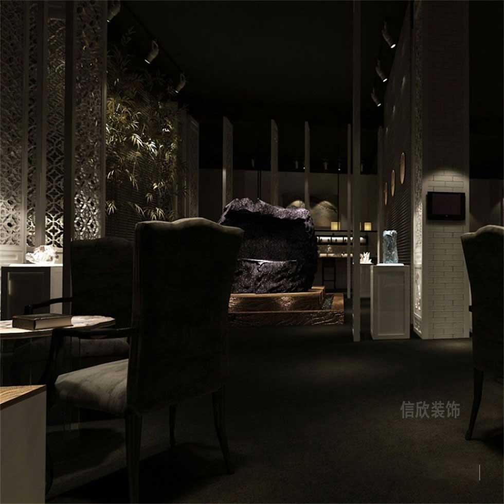 寶石展館的裝修設計,為了在昏暗的光線下襯托出寶石最天然最直觀的美感,采用灰白兩種自然色調(diào)為主體,灰色的地毯,白色的文化石墻面和雕花式的鏤空格調(diào),提煉出一種神秘深邃的氣質(zhì),一種冷色調(diào)的典雅韻味。
