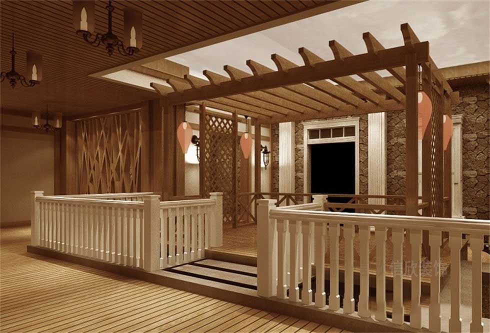 木易結構的亭子,在室內塑造出小橋流水的感覺,竹子寓意曲徑通幽處的禪趣,荷花池的設計,給原木風注入一絲綠意,更有生機勃勃的感覺,讓整個空間充滿了生氣。