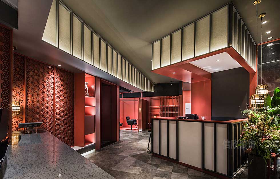 深圳寶安紅色美發(fā)店過(guò)道裝修設(shè)計(jì)
