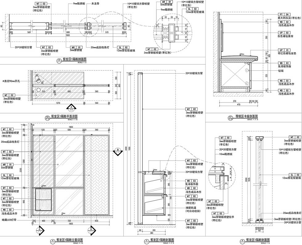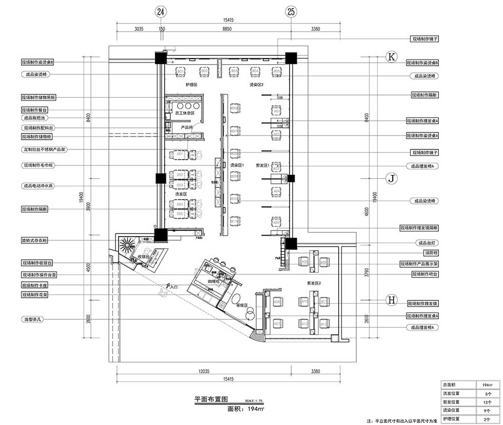 ▼以過(guò)道為界,左右兩側(cè)分別布局剪發(fā)區(qū)和燙染區(qū)