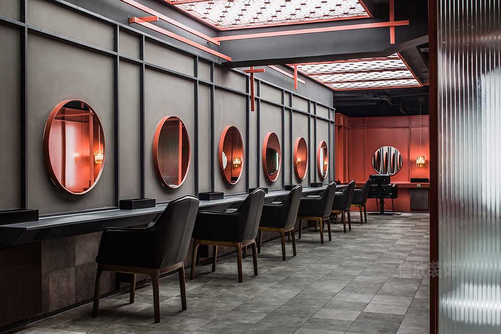 深圳寶安紅色美發(fā)店剪發(fā)區(qū)裝修設(shè)計(jì)