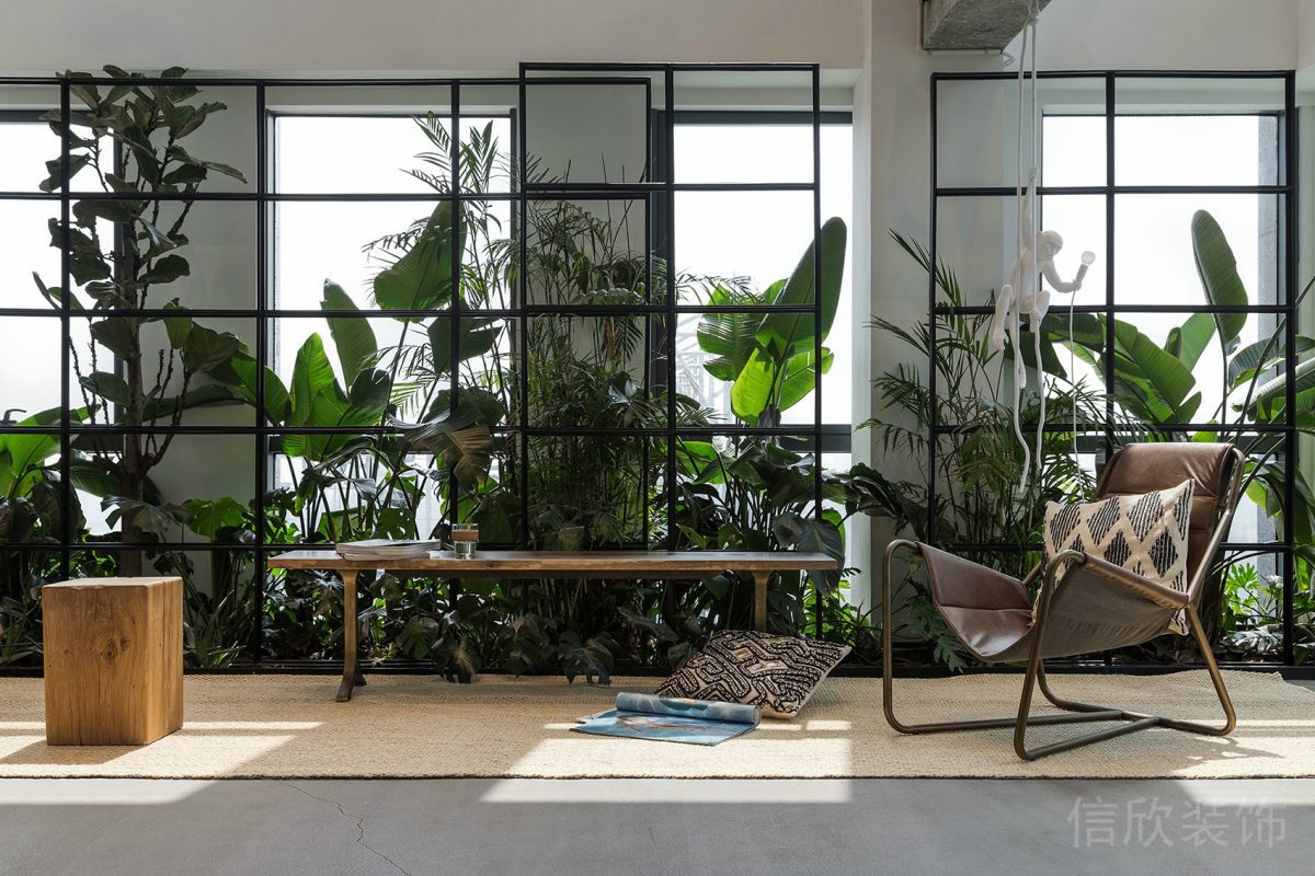 辦公區柜體及家具都采用白色為主色調,大面積落地窗增加采光和視野。