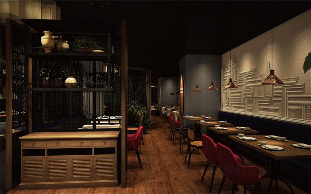 大地色系的色彩氛圍、鐵藝窗花的曲線勾勒、冷峻金屬的巧妙使用,使親和飽滿的餐飲空間平添了一絲神秘氣質(zhì),品質(zhì)感與豐富度的結(jié)合,尤其適合小資審美。