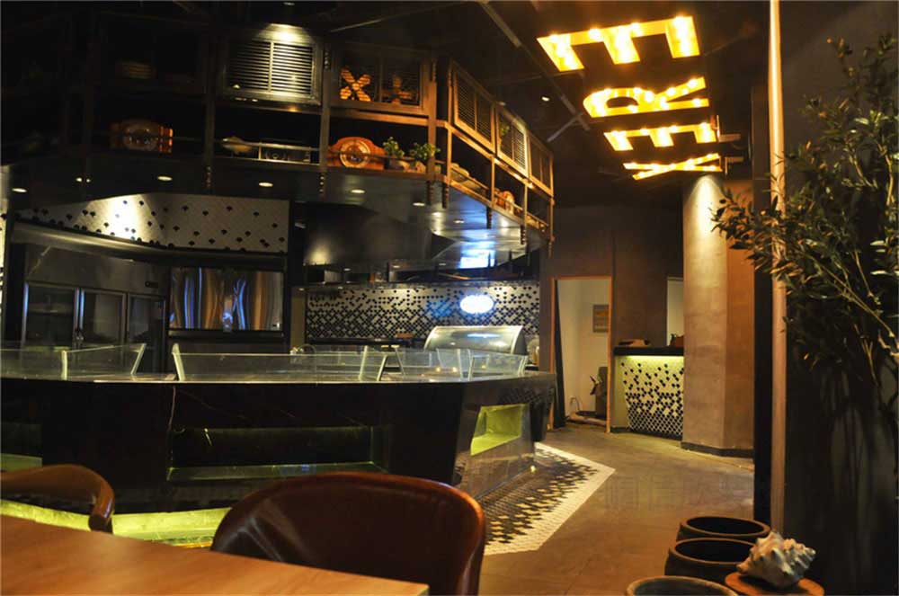 有序散落于天花上的六邊形燈飾,配合魚鱗磚、海洋元素的墻繪…猶如進(jìn)入了海洋世界一般;運用切割方式構(gòu)成體塊化的島臺設(shè)計,多趣味、多形態(tài)的的調(diào)性,顯著易識,為動線組合賦予了更多的靈活性。
