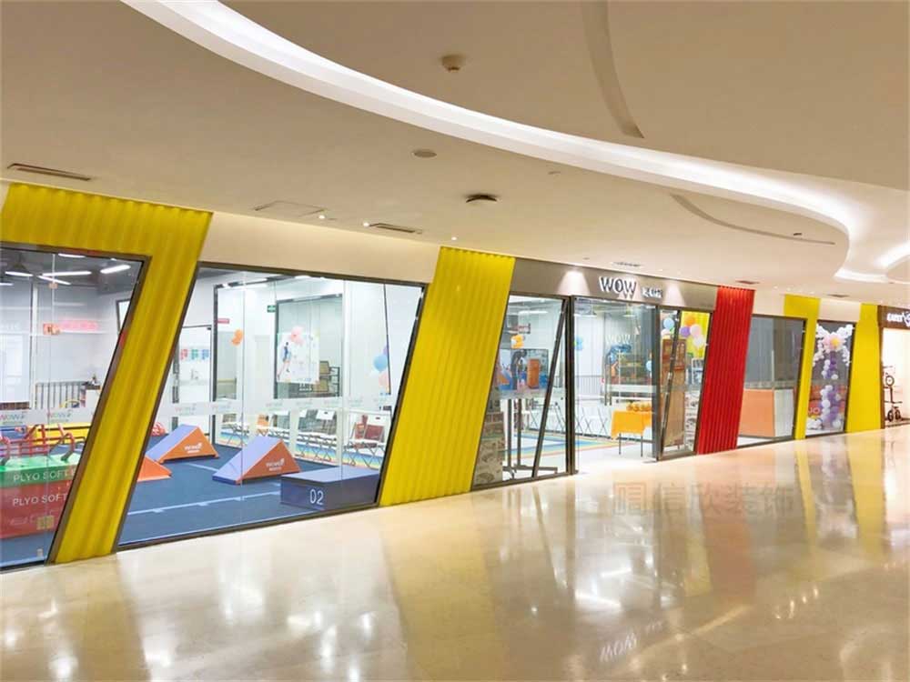 不規(guī)則矩形和落地窗的設(shè)計,滿足品牌效應(yīng)的宣傳,又能看到里面的場景,起到吸引顧客的好奇心,進(jìn)一步了解的目的。