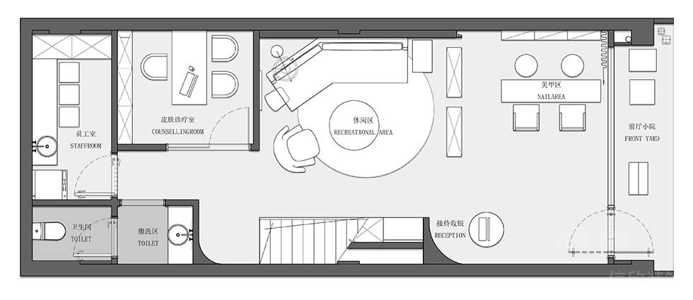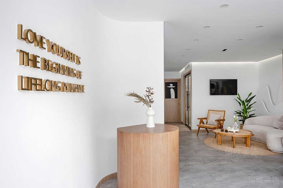 設計理念:本案是一所北歐風的美容養生店裝修設計,北歐風格與裝飾藝術風格、流線型風格等追求時髦和商業價值的形式主義不同,北歐風格簡潔實用,體現對傳統的尊重,對自然材料的欣賞,對形式和裝飾的克制,以及力求在形式和功能的統一;在建筑室內設計方面,就是室內的頂、墻、地三個面,完全不用紋樣和圖案裝飾,只用線條、色塊來區分點綴。