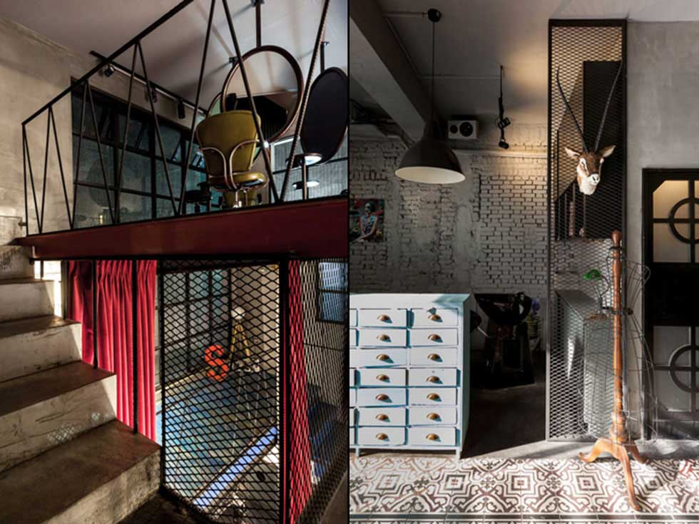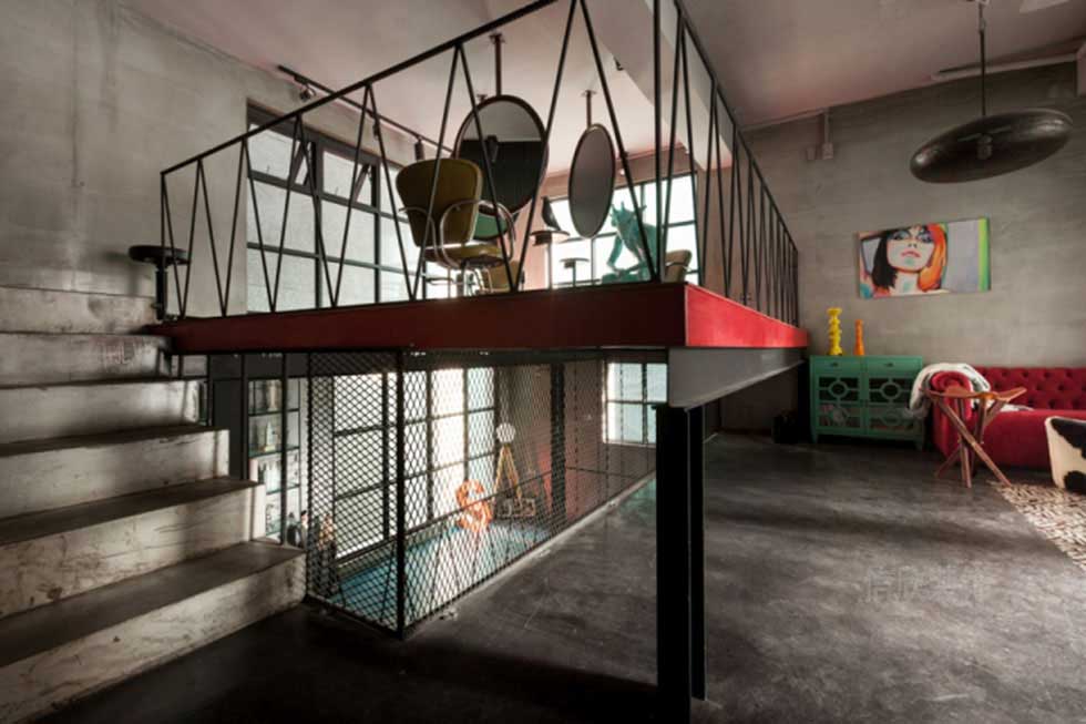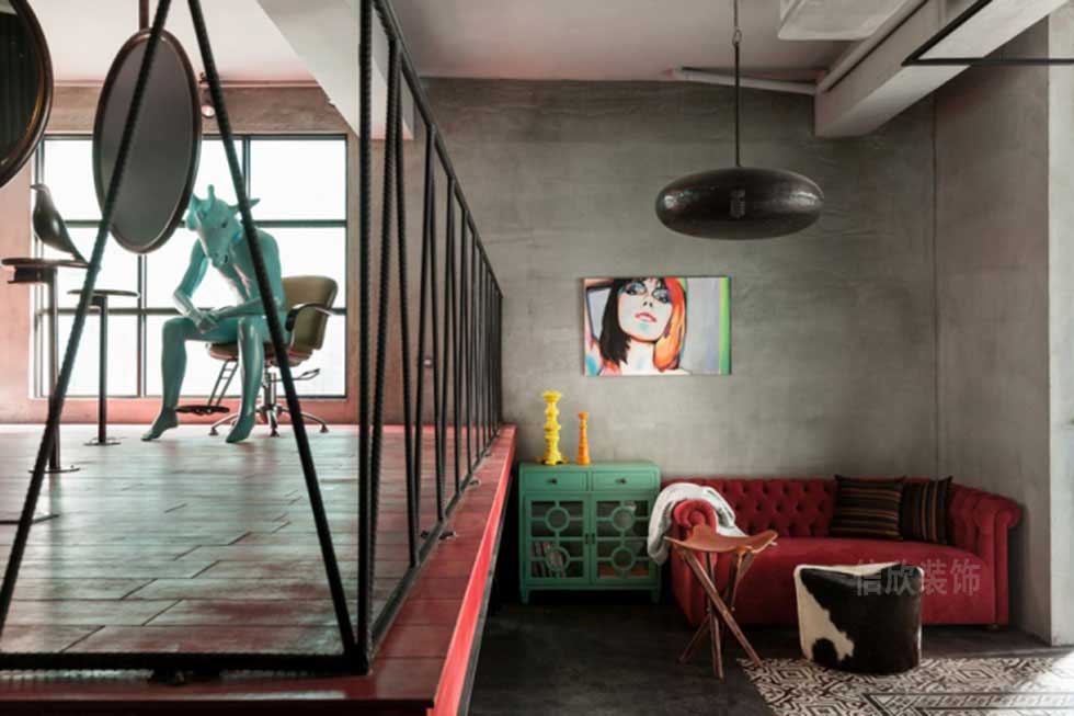 鐵藝的欄桿,粗糙的地面,吊在頂上的鐵藝鏡子,把所有的工業(yè)材料進行了改造和升級最后加以合理利用,為的就是讓一切看起來更隨性和自由。