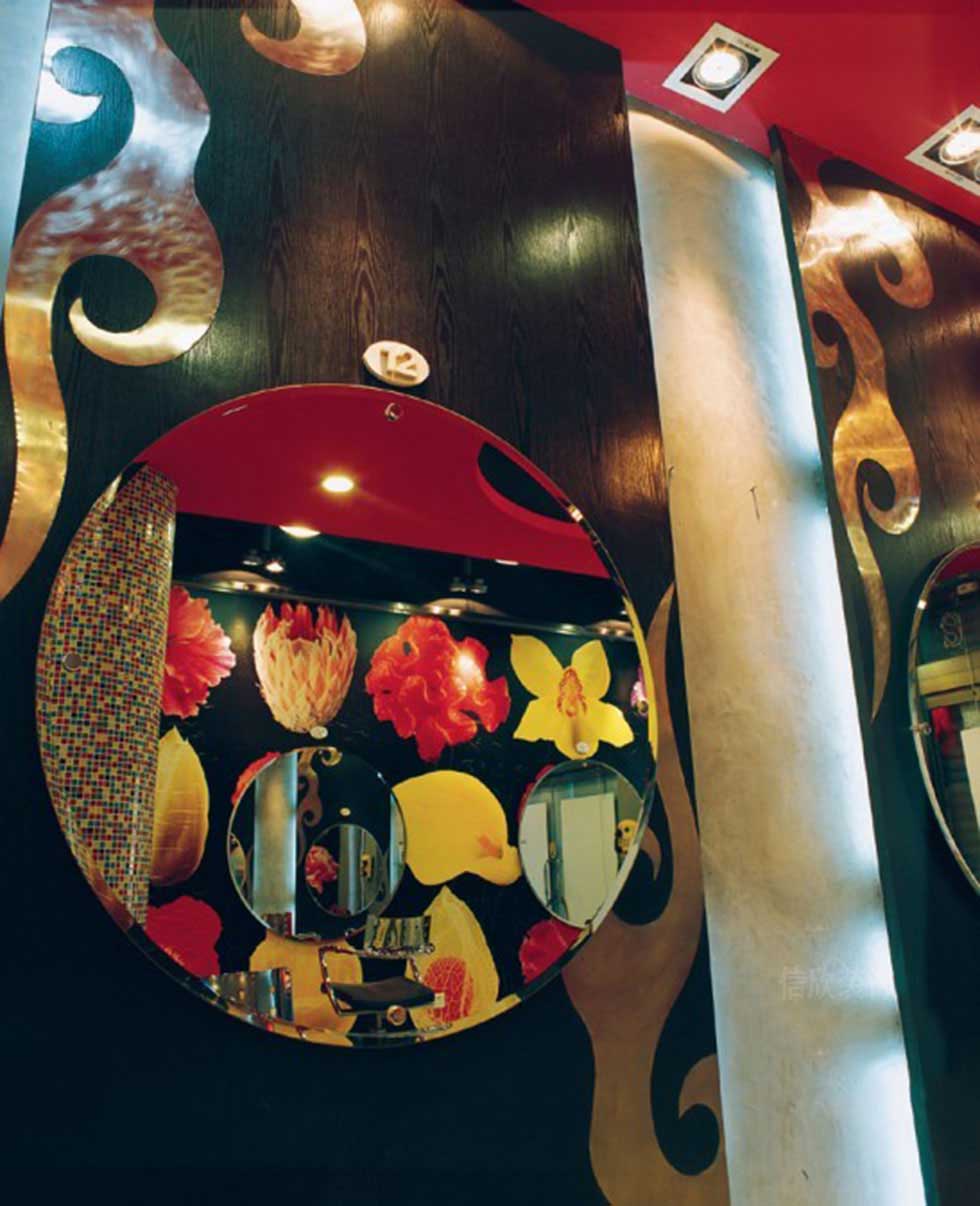 剪發(fā)區(qū)的設(shè)計,整體的理念,來自于多元素的拼接,和東西方美學(xué)藝術(shù)結(jié)合的抽象感,莊重的氣氛,在彩色馬賽克元素的打破和插入中,變的活躍,精美,讓人沉醉在古典與現(xiàn)實的幻境中。