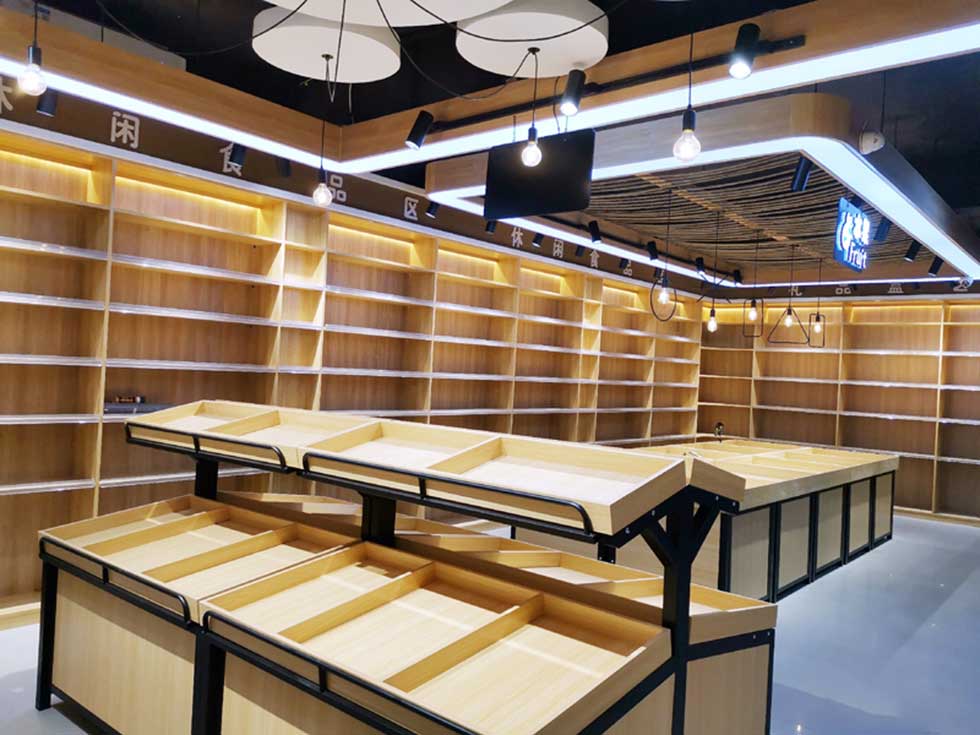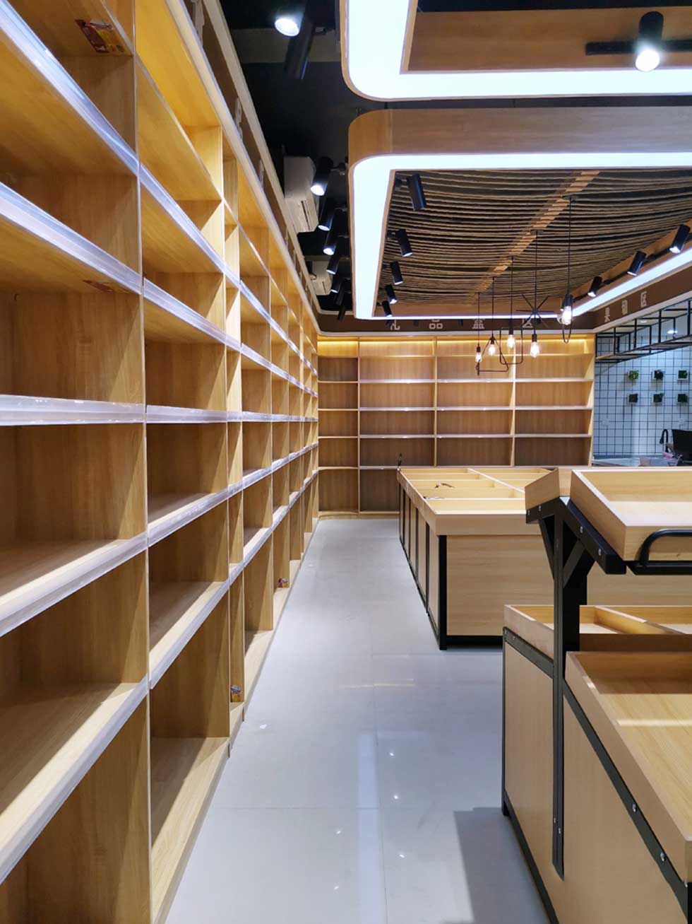 原木結構的壁柜和中島臺的設計,使空間的整體不浪費,在商品的品種上可以多一些選擇,多上一些樣品,在光線的照射下,溫暖而甜蜜,色彩感覺如陽光一樣的溫和柔情。
