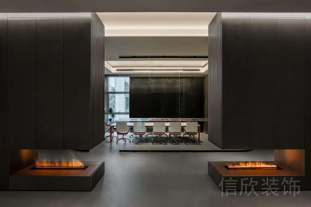 裝修設(shè)計(jì)所有安置的灰色布藝的辦公椅都一一彰顯出時(shí)尚極簡風(fēng)辦公空間的藝術(shù)本色。