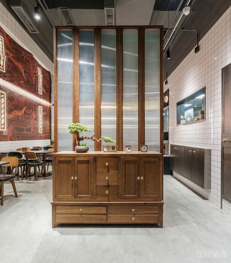 本案是位于深圳龍華的一家餐廳裝飾設計案例。整體是一家懷舊的港式茶餐廳裝修風格,在很多90后,00后的年輕人,可能對這類的裝修風格基礎非常少,但是對于經歷過這個時間斷的人來說,就比較親切了。中式的元素貫穿整個店面,然后搭配了簡約的家具,墻面小方格的瓷磚鋪貼,都讓整個餐廳的效果做到了復古,懷舊的感覺,同時也搭配了一些現代的元素進去,也不至于讓餐廳過于的陳舊,以便適應當前人們的審美。龍華餐飲店裝修墻邊卡座