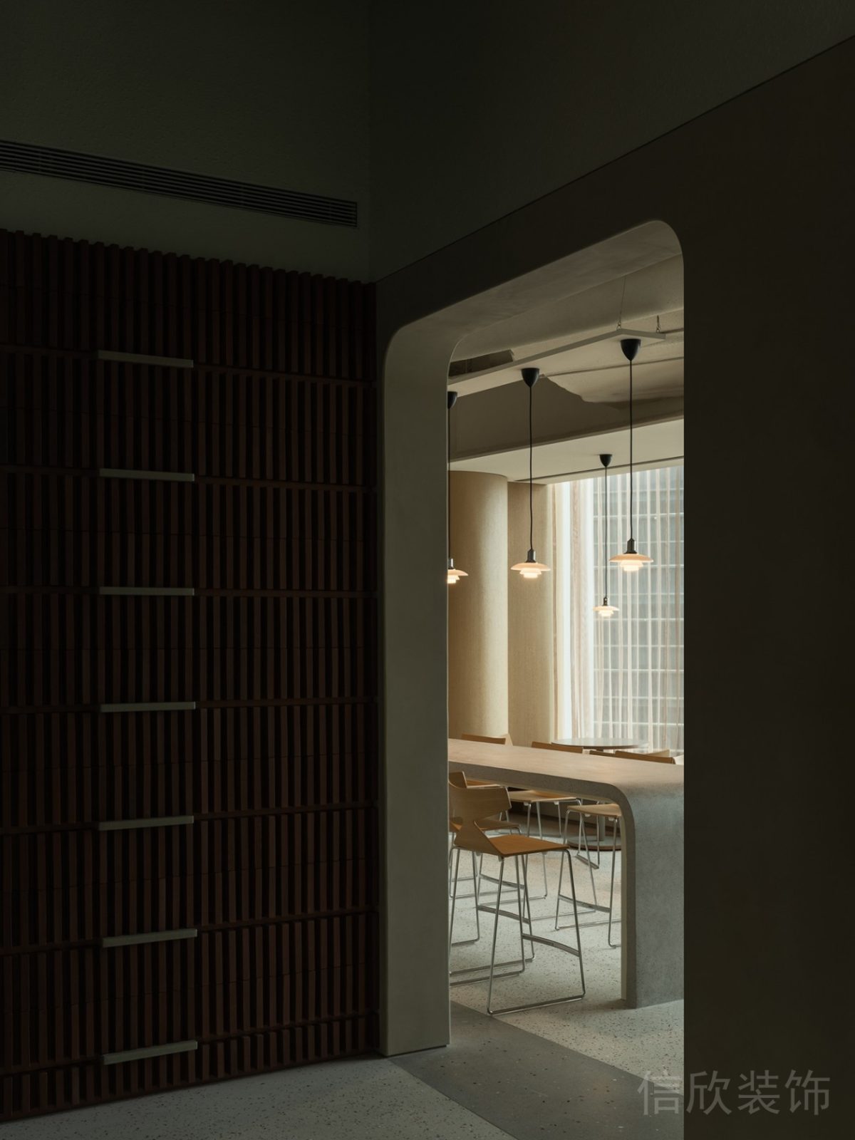 天花板 設計成流線型或者環形,使用簡潔的白色調,與整體空間保持一致,增加層次感。