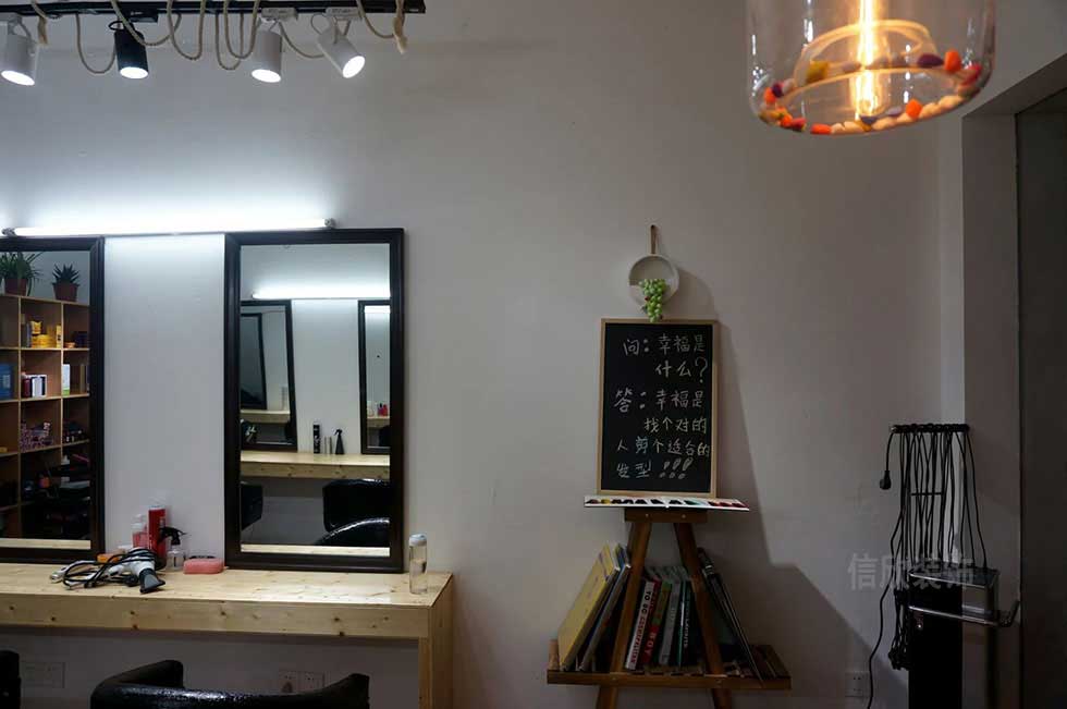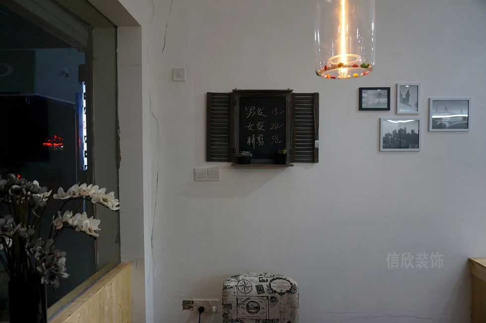 美發店大廳的裝修設計,采用混合型的風格理念,保持原始建筑風格的基礎上,直接刮白和軌道吊燈的應用,簡潔明了,富有工業感的氣息,整體實木地板和家具,顯示出溫馨的一面。