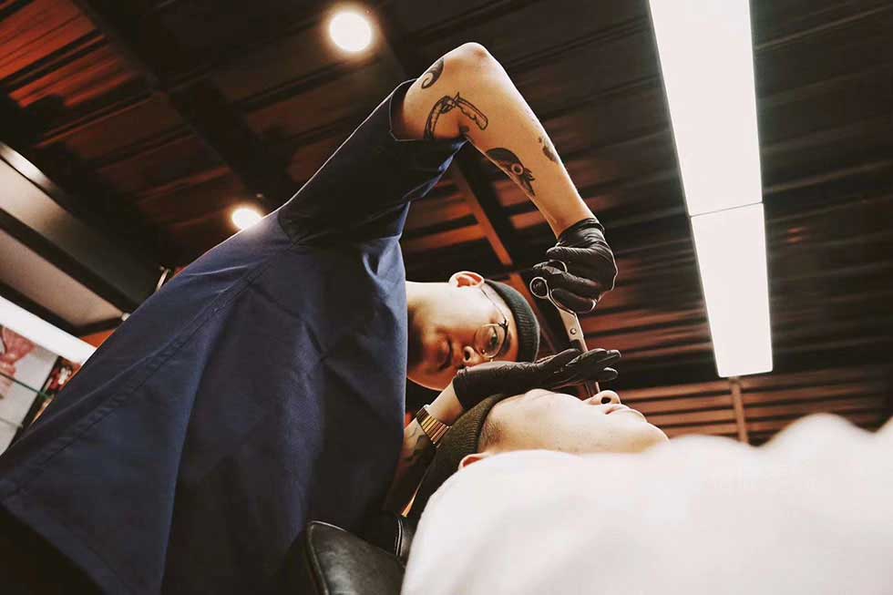 深圳龍華男士理發(fā)店門(mén)頭涂鴉裝修案例
