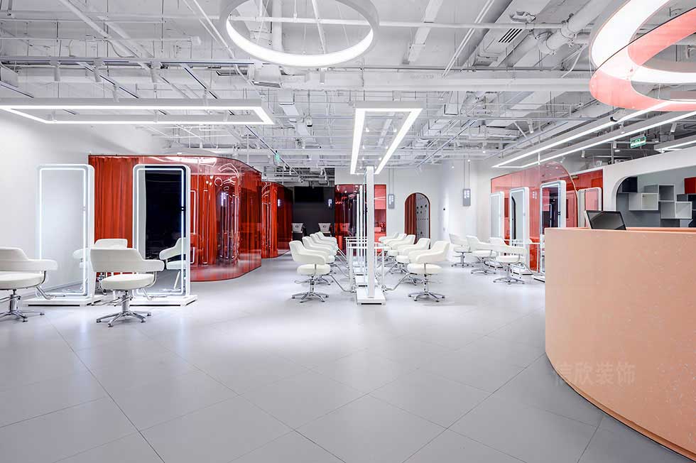 商業店鋪裝修設計 ? 美發店裝修設計-發廊裝修 ? 深圳羅湖東門400平方美發店裝修施工案例