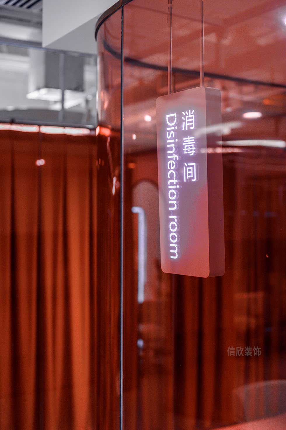 VIP間的裝修設計,用紅色亞克力玻璃制成的隔墻,造型上選用優美的弧形,透明的設計保證了一定的光線和私密性的感受,在充滿紅色激情的小包間里面,給客戶帶來別樣的體驗。