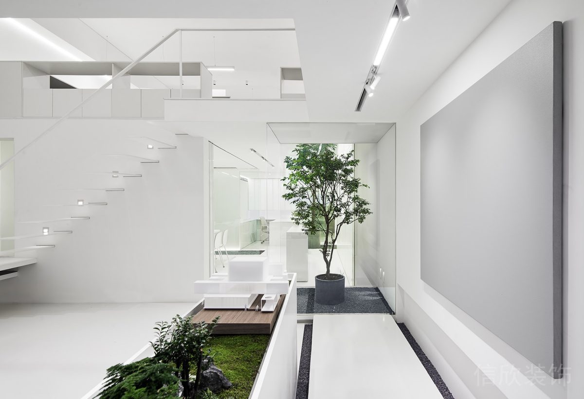 會議室中,采用了開放式的玻璃隔斷,既能隔音,又能讓自然光灑入,提升整體明亮度?;疑{的墻體設計與木質元素相得益彰,形成了簡約而高端的視覺效果。閣樓區域的斜面設計,使得空間層次更加豐富,搭配高端定制的木質背景墻和精致的燈飾,散發出優雅與專業的氣息。整體而言,這一辦公室設計不僅注重實用性,更強調了空間的藝術感與自然感,完美滿足現代商務需求,打造出一個理想的工作環境。