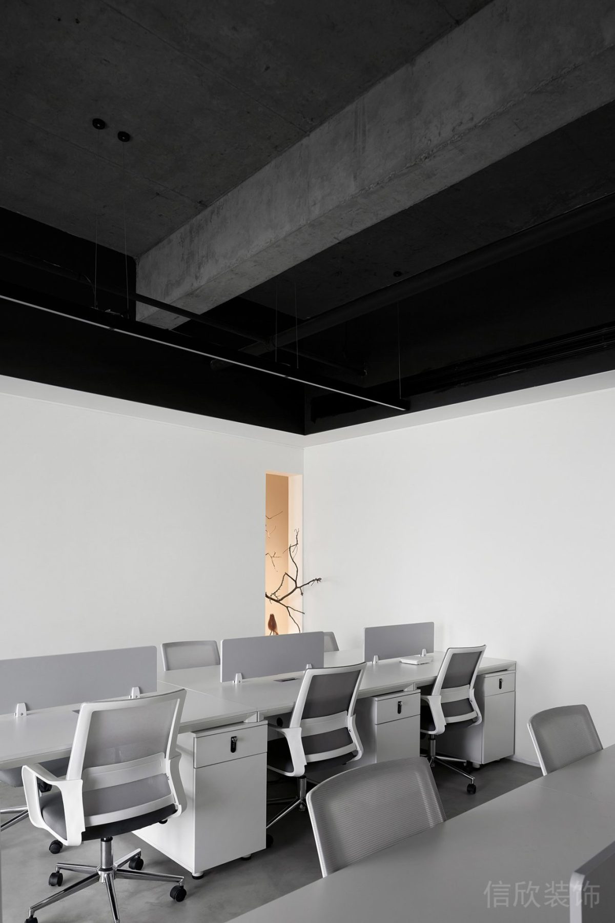 本次1500平方米的白色調簡約風辦公室裝修工程摒棄了一切復雜、炫技、花哨、繁冗的裝飾鋪陳,目光聚焦在空間本身,白色主色調搭配水泥墻、淺灰色的水泥自流平、木色、黑色和局部的橙色跳躍,使空間簡約、典雅并具有特別的審美氣質,不僅呼應了委托方企業的品牌理念,還將日常工作實際得使用功能與空間美學完美融合。