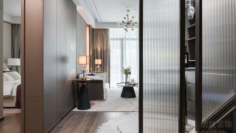 本案位于深圳市南山區星都·梅沙天邸是一個別墅家居二手房的裝修設計案例,所謂輕奢,實際上是以極致簡約風格為基礎,通過一些精致的軟裝元素來凸顯質感,同時也濃縮著意想不到的功能與細節,從而彰顯了一種高品質的生活方式。駝色、象牙白都是傾向于高雅調性的色彩,它們簡約、時髦且富有輕奢氣質,運用在家居設計中,可以在呈現溫馨大氣的格調之余,又牽引出濃濃的時尚高雅范兒。輕奢風格注重設計手法上的簡潔、大氣,但并非忽視品質和設計感,而是通過材質上的奢華,不著痕跡地透露出對于精致、考究生活的追求。
