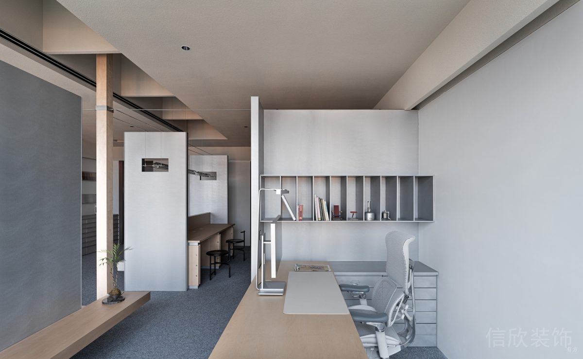 淡雅色經(jīng)理辦公室的裝修設計體現(xiàn)出混搭時尚工業(yè)風空間設計的嚴謹與感性。