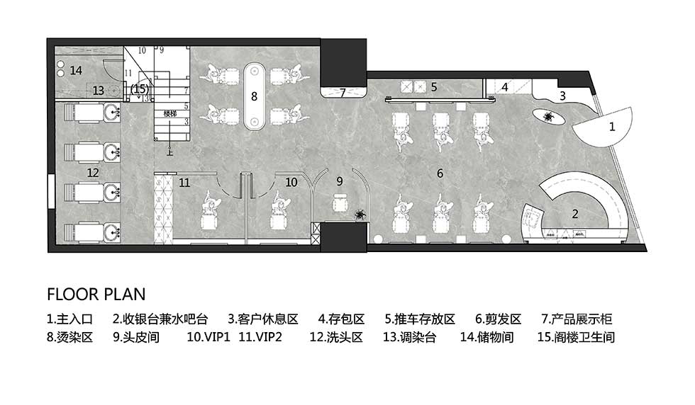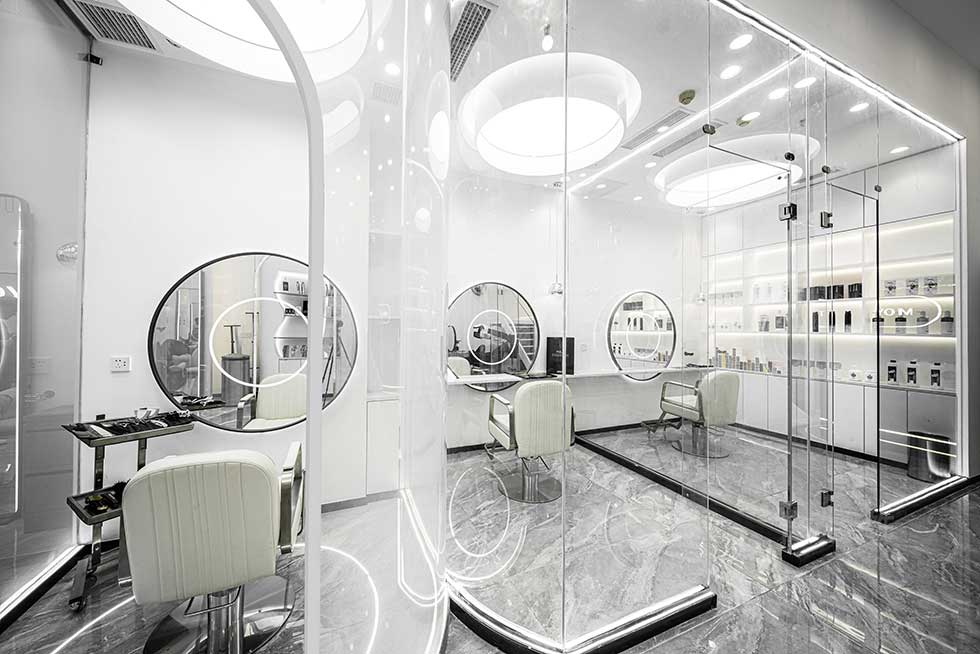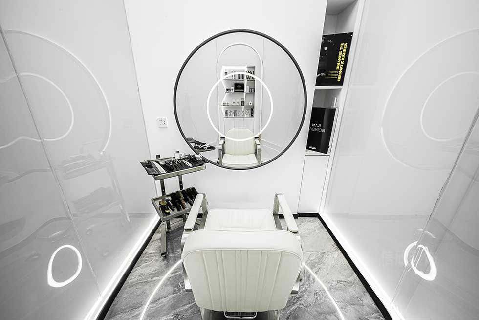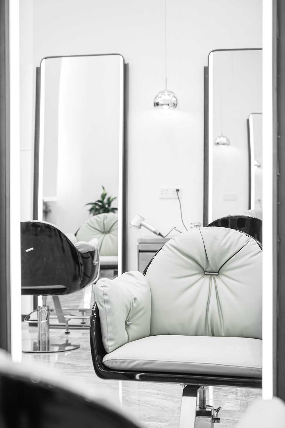 燙染區水磨石臺面應用,配合定制款超薄雙面燙染鏡,簡約不簡單。