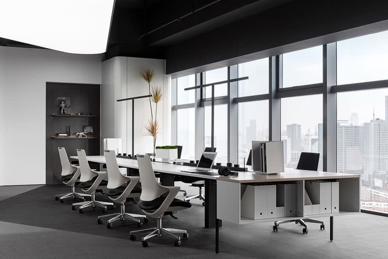多元辦公模式與自由場景藝術 商業價值展示與未來辦公圖景 共存于此 | 在快速的城市化進程中,在眾行業穩步發展的前景下,當下的商業集群、人居環境與辦公業態,呈現出不斷聚合、逐漸升維的趨勢,商業綜合體作為承載城市商業形象的超級名片,備受矚目。其中的商辦空間,亦是城市超級名片的重要組成部分,注重品質感與場景化的辦公環境,越來越成為許多企業在日常辦公、高效協作、彰顯品牌、促成合作時的首要選擇。 與此同時,除了常規的實用性、人性化、美學性等考量維度,設計師如何兼顧多樣化工作節奏、生活化配套空間、綠色環保訴求、現代科技運用等多個方面,以理性的創意展現未來辦公場景,成為辦公展示層的設計挑戰與價值所在。知名室內建筑師事務所 YuQiangPartners 便是深諳辦公空間設計的先行者,其最新落地實現的沈陽旭輝中心辦公展示層,是未來辦公場景的率先示范。
